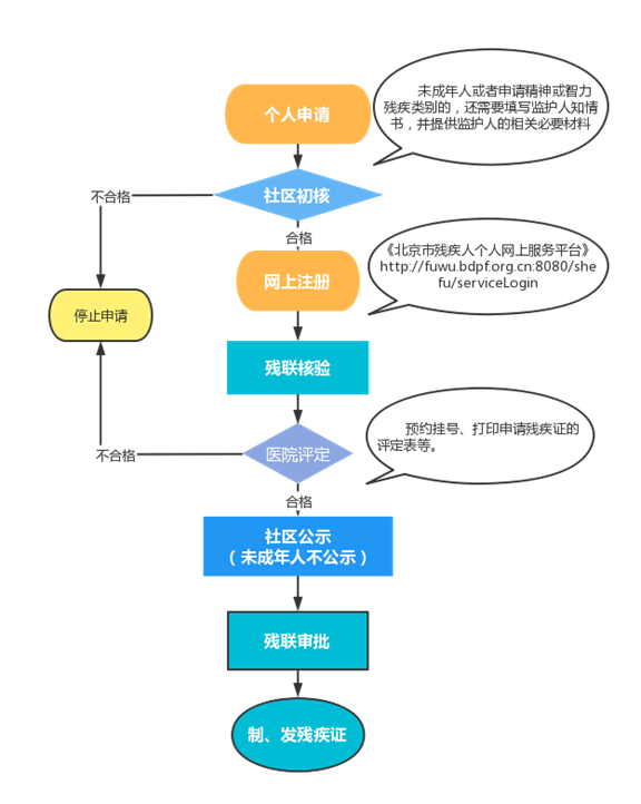 小于等于14周岁的未成年人,需预约朝阳医院儿科进行残疾评定。