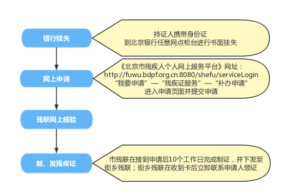 第一步,申请人登录《北京市残疾人个人网上服务平台》,点击“我要申请”-“残疾人证服务”-“注销申请”,进入申请注销页面,提交证明材料后完成申请。