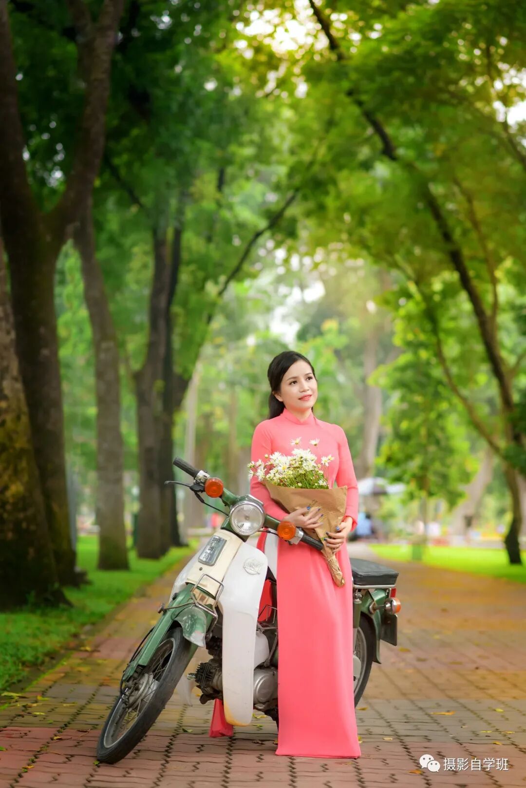 不只可以使用小道具,可以像上图和下图这样,找一些自行车、摩托车的大道具,搭配拍摄,既可以丰富姿势,又可以显得很文艺。