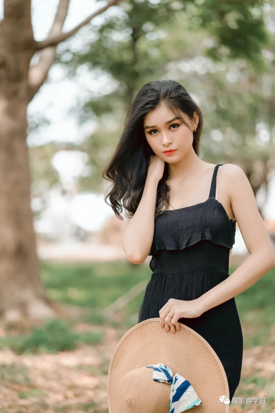如果特意摆出来的姿势,一定要注意,不要太扭捏,比如上图,手放到脑袋上,毫无根据,而这样的姿势,也会非常尴尬。当头上有帽子的时候,手就适合放在头上。没有帽子的时候,直接像下图这样,单纯地侧身拍一张就好了。如果背景中,有大树,注意不要头上长树。如果背景有水平线,竖直线,注意这些线条不要倾斜,不然照片看起来非常不稳定。
