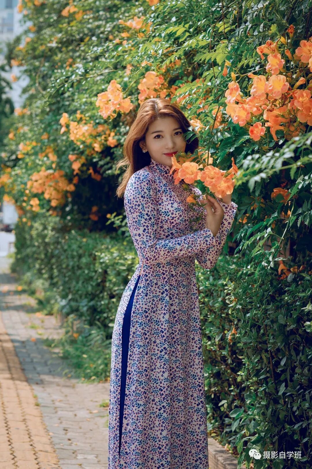 当使用一些小型道具的时候,中年女性朋友注意,不要摆出很尴尬的姿势,比如上图,把花捧到头上,就很尴尬,而捧上去的花,还让眼睛睁不开了。而如果像下图这样,把花捧到胸前,就又美又自然了。