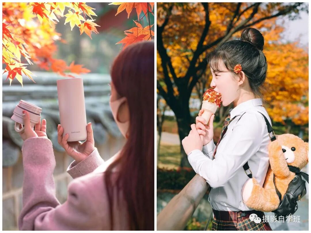 拍人像照片使用道具的时候,一定要注意不要突出道具,而是要突出人,否则就有广告嫌疑,像上图左侧这张好,像在给杯子做广告,这是拍摄人像的大忌。而像上图右侧这张,人吃着冰激凌看起来就很自然。