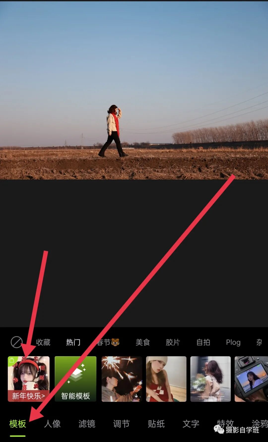 老孙身后,后高压线的架子,要等她挡住架子,再按快门。有很多模版,直接套用就可以,调色,文字,全都是现成的。