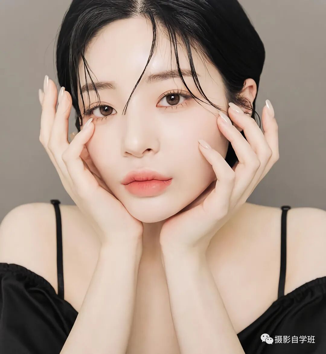 如果你想摆姿势,面对镜头,手托下巴的时候,注意不要像上图这样,把脸挤变形,这样会让你的面部,看起来很不美观,而应该像下图这样,可以两个手都放到下巴处,但是,只是轻轻地搭上,没有用力。脸部不变形,配合上手部姿势,才更好看。