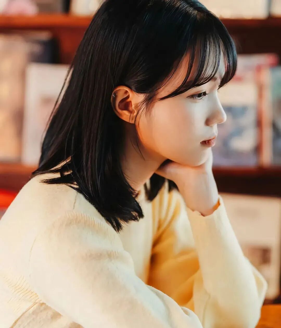 也可以像上图样,不面对镜头,但是要注意,拍摄侧脸照片的时候,不要看镜头了,因为看镜头的话,侧脸眼白会露的很多,就不好看了,上面这张照片,眼神就很值得你参考,不看镜头的同时,注视远方,出神的状态,就很漂亮,或者像下图这样,侧脸拍摄时,抬头看向远方,显着有所憧憬,眼神也不看镜头,看向稍高一点的位置,神态就会更好了。