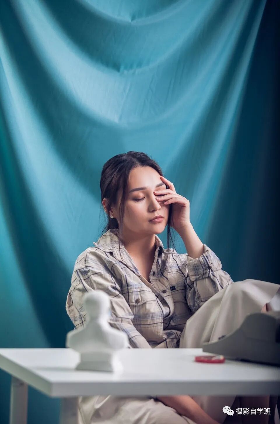 可以像上图一样一个手敷在眼睛上,这样照片中脸上有一半明一半暗,不是全暗,过渡自然也很好看。