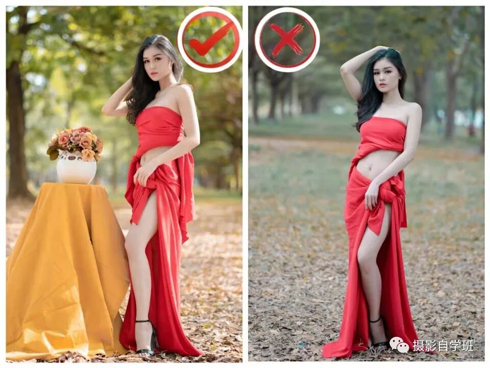 拍摄人像照片的时候,除了主角要漂亮好看,衣着得体,背景也同样重要,下面那两张图对比,就非常明显,左侧照片背景暖色就更加讨喜,右侧照片灰暗就没有左侧的好看,你赞同吗?