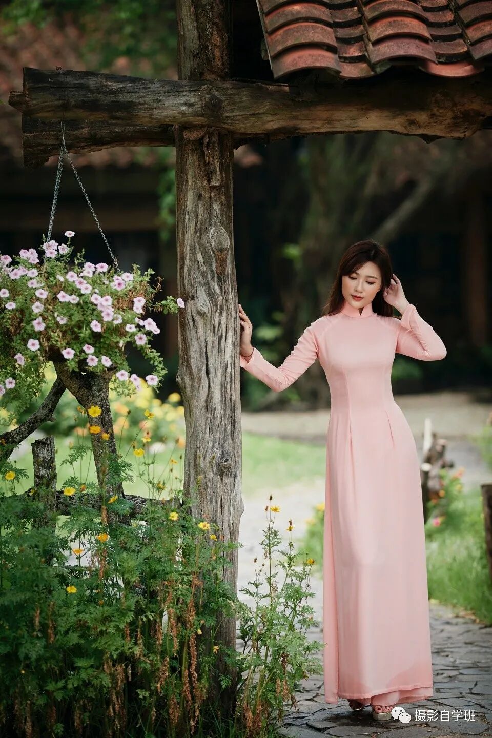 上面这张照片,不会让你很担心这个女士,一不小心就倒了。这种姿势,也会让其他观者感觉很危险。我们利用树木拍摄时,可以让一个手轻轻地扶住树干,另一个手轻轻地抚头发,这样看起来就更舒服了。