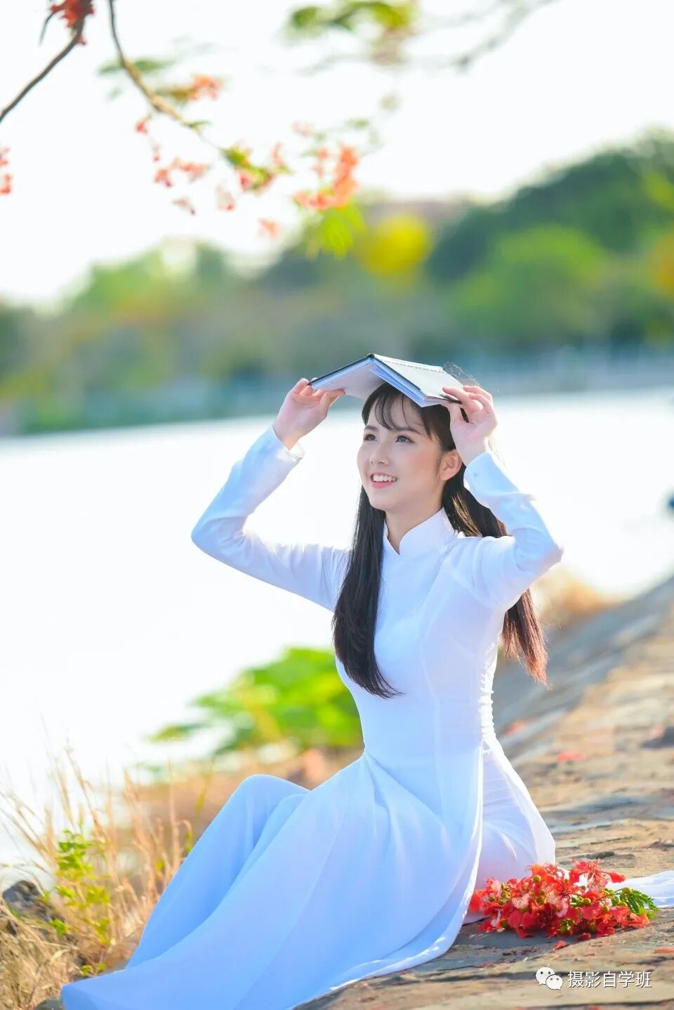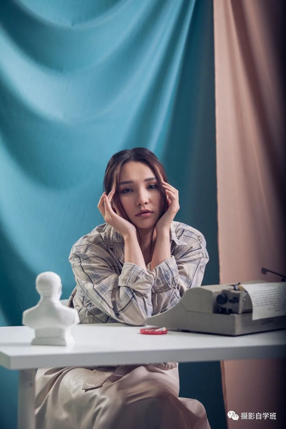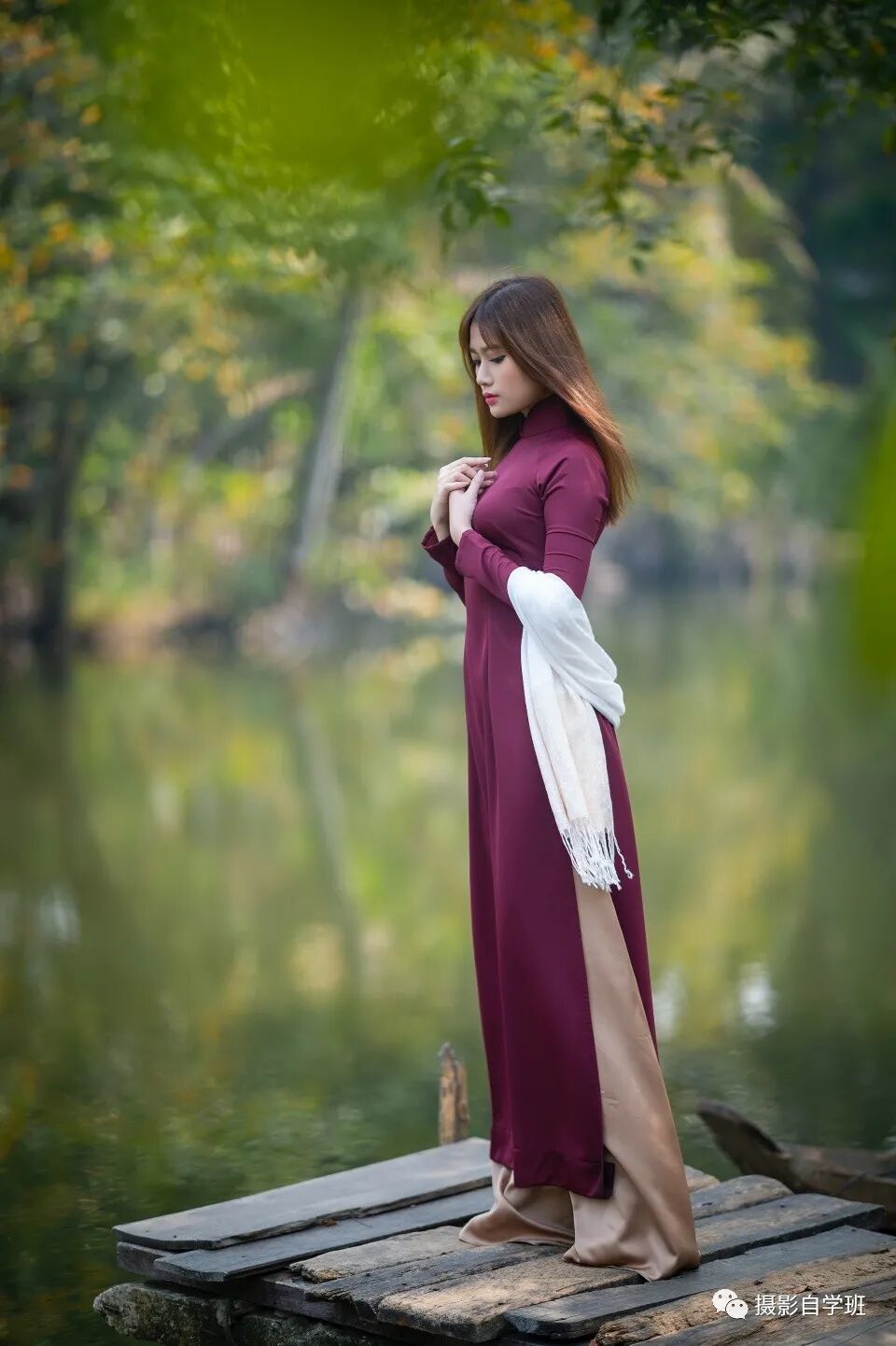手臂悬空没着落。手挡面光脸暗错。不如回眸看镜头。不如抬眼拄着手。靠树不如手轻抚。过曝调低感光度。主体一定要突出。围巾搭臂有风度。背景不灰好片出。
