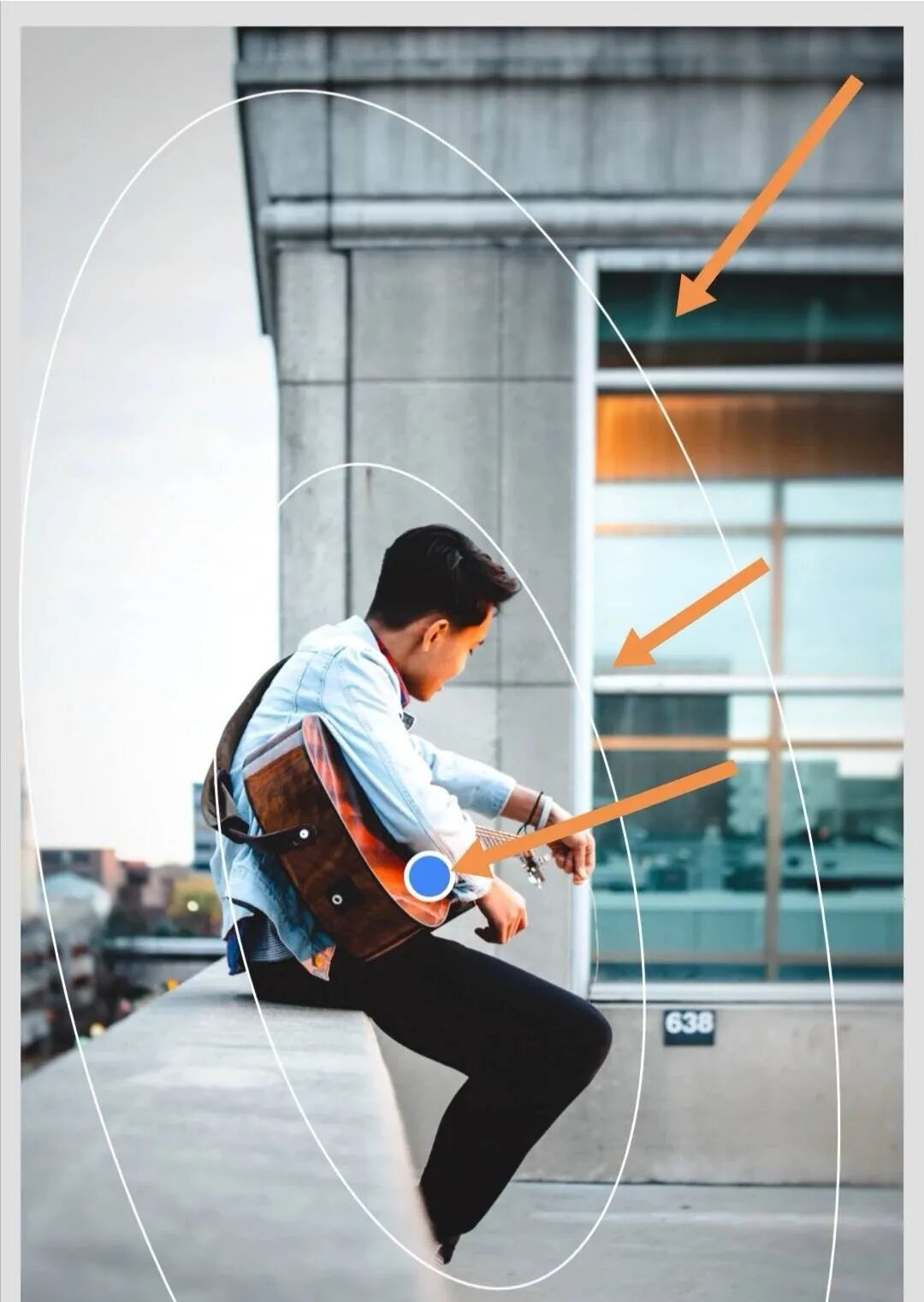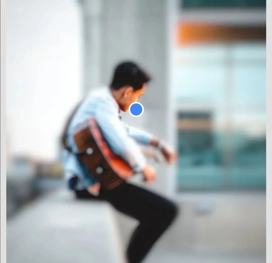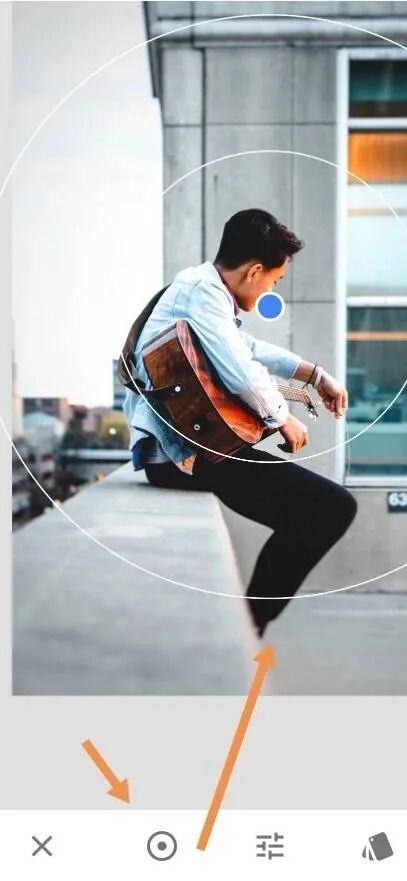 (2)页面上出现一个同心圆,把圆心移动到人物上,两个手指按住圆,向中间收缩,可以调整圆的大小范围,让人位于内部圆内。内部圆内是清晰的,两圆之间是过渡,外圆以外,是最模糊的。