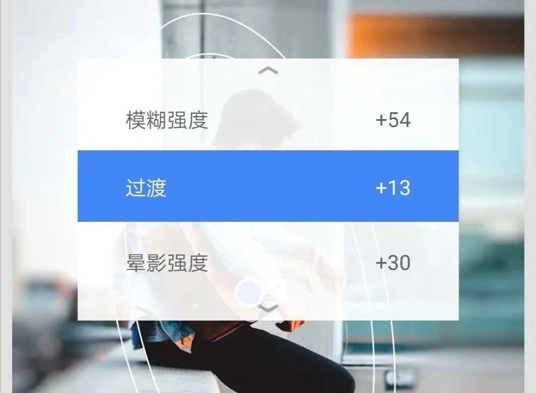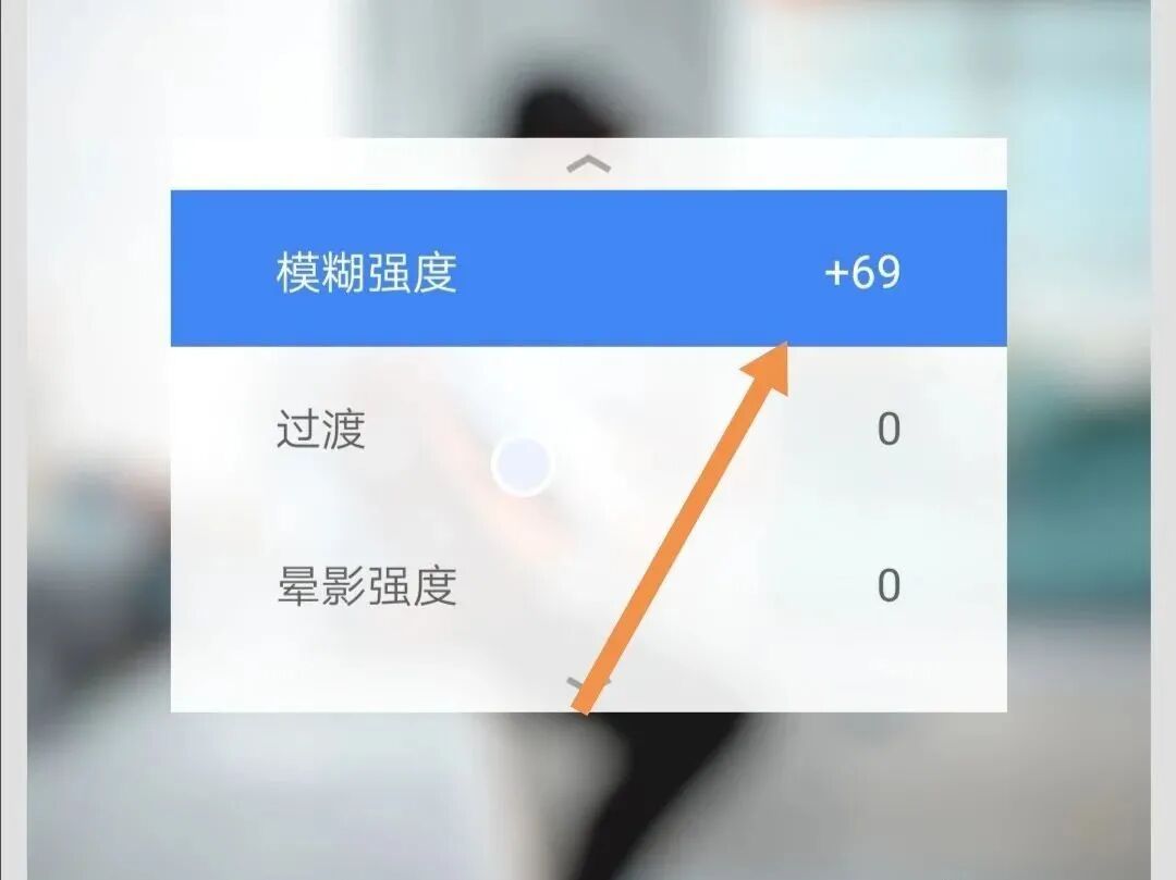 手指上下滑动,可以调整模糊参数,如果不喜欢有4个暗角,那可以让晕影强度为0。
