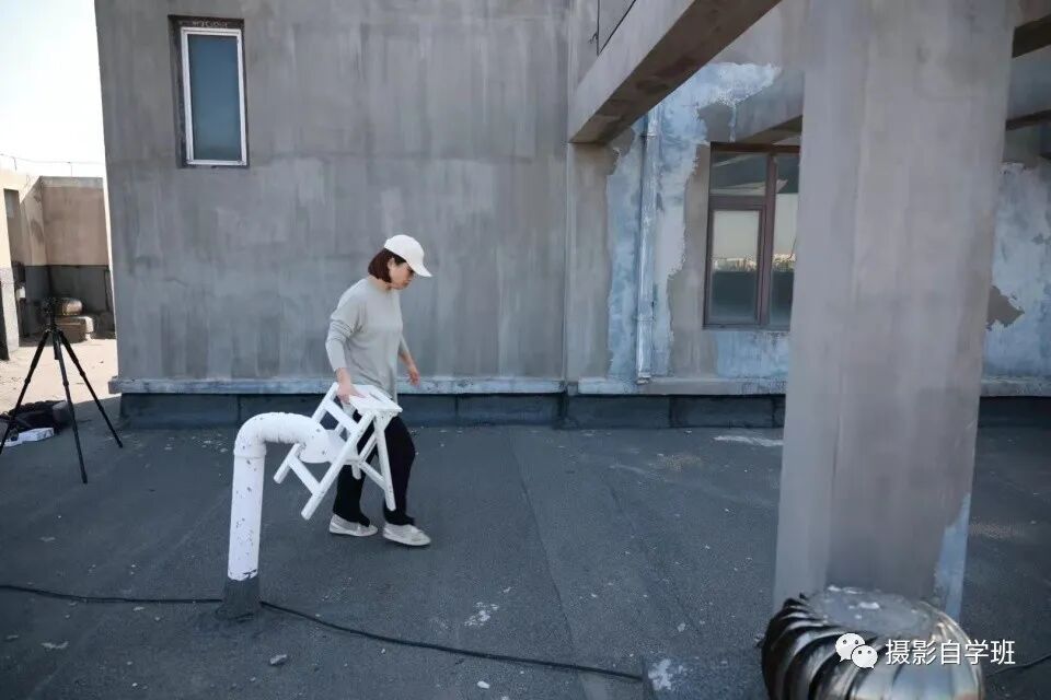 下面这张照片,介绍一下当时的拍摄环境,老孙手里拿了一个凳子,方便我使用高机位,从上往下进行俯拍。
