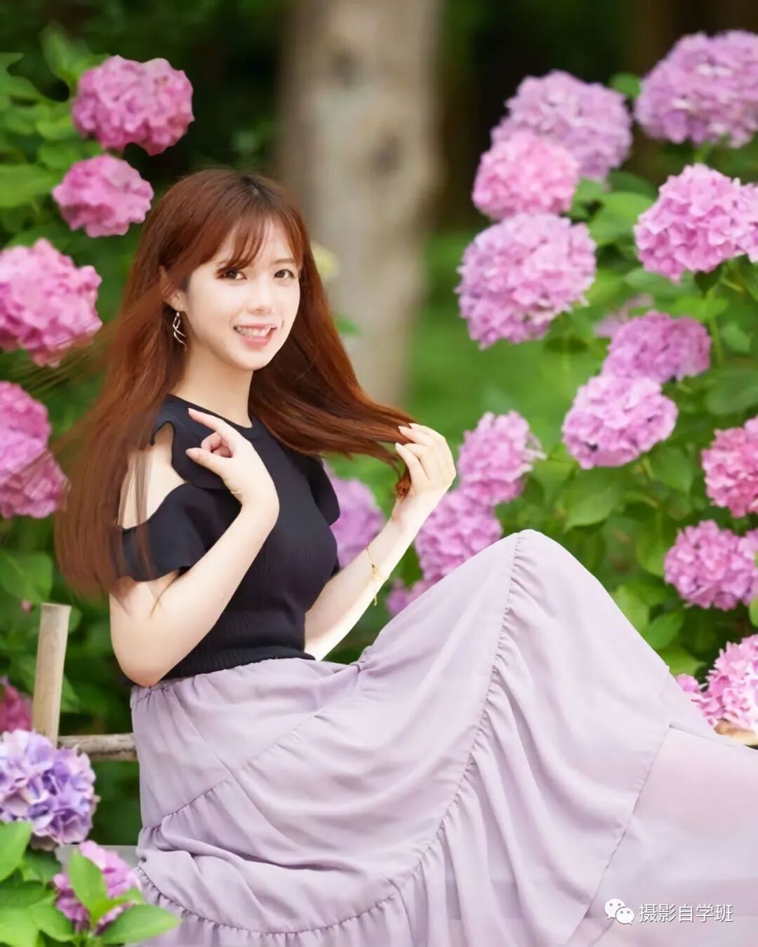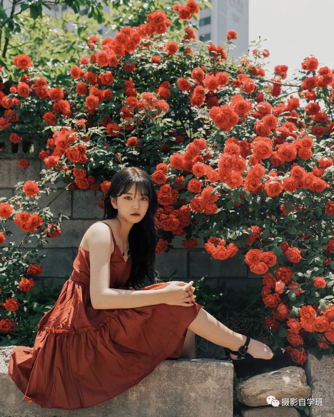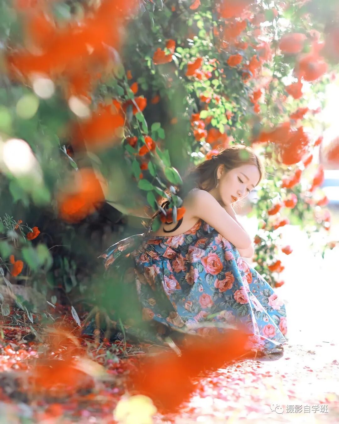 上面这张照片,主要的错误在于,虽然遮挡人物的部分,形成了很好的虚化,但是挡住了人物的脖子,只露出来一个脑袋,挡脖子的虚化部分,太实了,导致照片看起来,有些怪异,稍微有那么一点灵异,所以,我们在利用花朵形成虚化,拍摄照片时,要注意,可以采用下图这样的拍摄技巧,我用文字,为你做了总结。