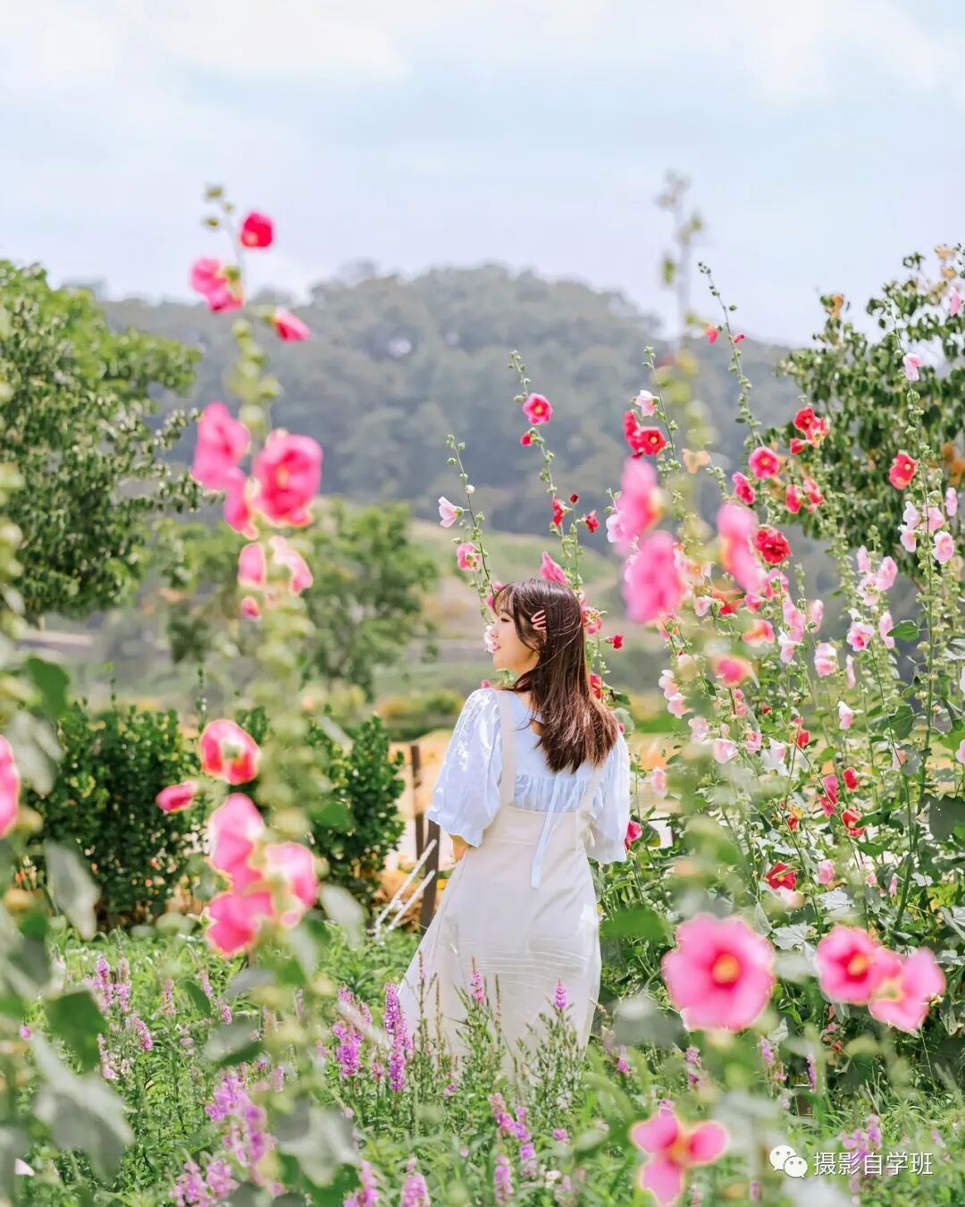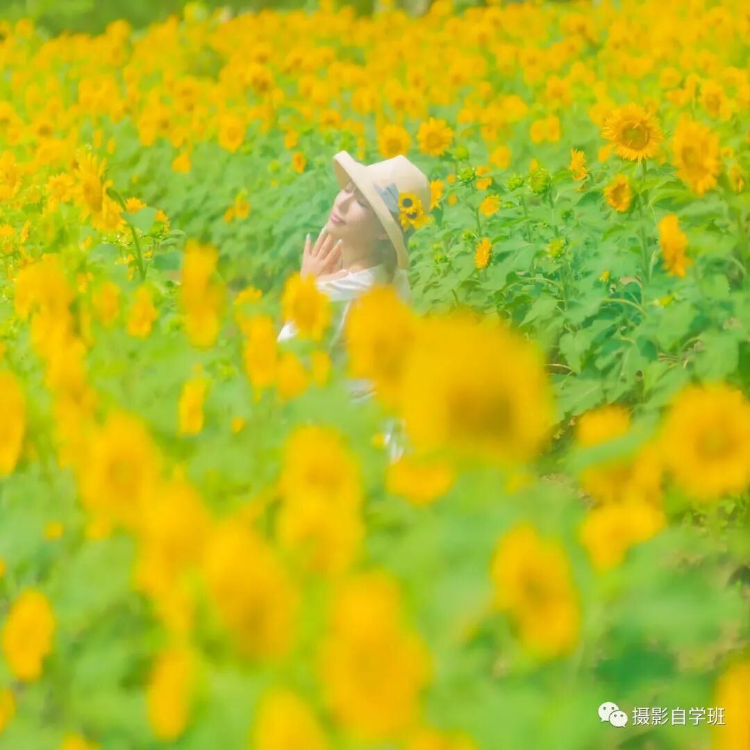 当我们在花海中拍摄时,用花海的花朵,遮挡住人的身体,要注意什么呢?下面这张照片。是一个错误的例子,你看出来错在哪里了吗?