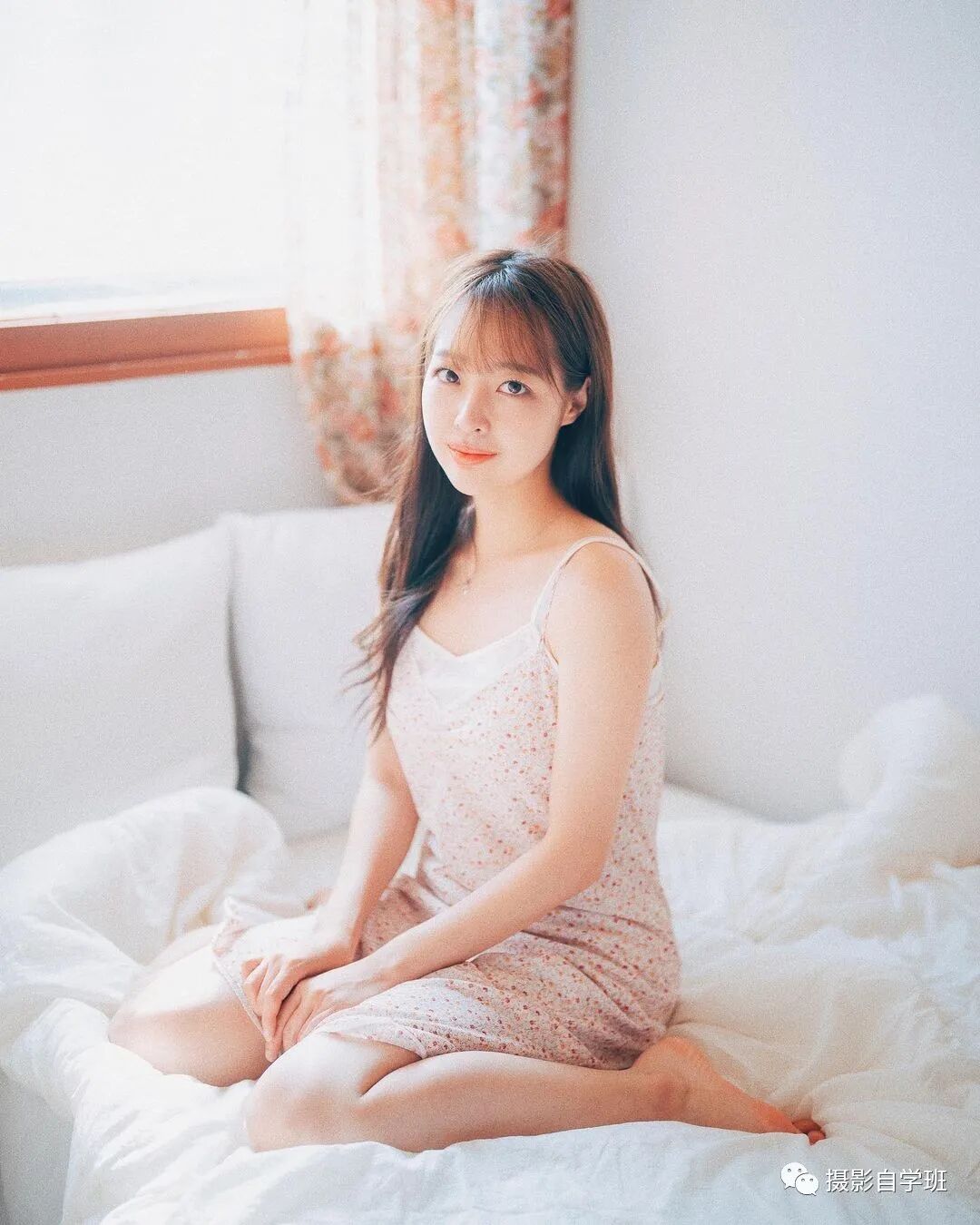 在家里,一定要在窗户边拍几张照片,因为窗户边有窗口光,窗口光可以给人的面部补光,拍出来照片之后,人的面部就不会暗了,但利用窗口光时,有几个点要注意。如果窗口的光线太强,要使用家中的白纱帘进行遮挡,这样光可以透过来,照到人们的面部之后,又会非常柔和,不会把人的脸照得过曝。窗口光形成的洁白,会让照片看起来优雅有韵味。还有下面一点最为重要。