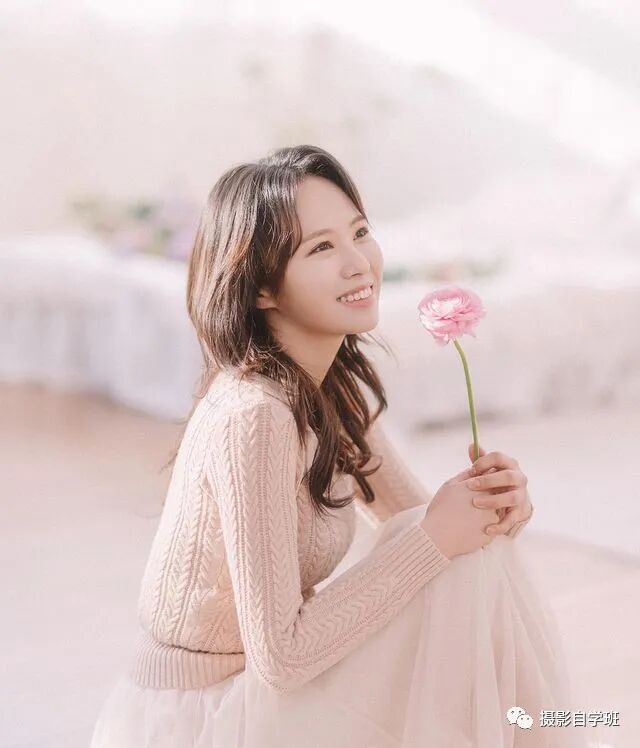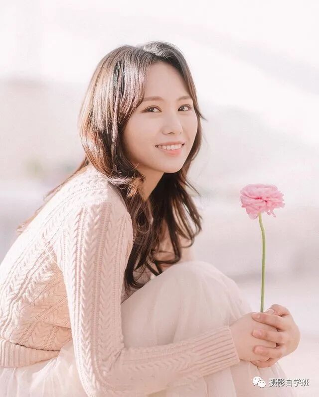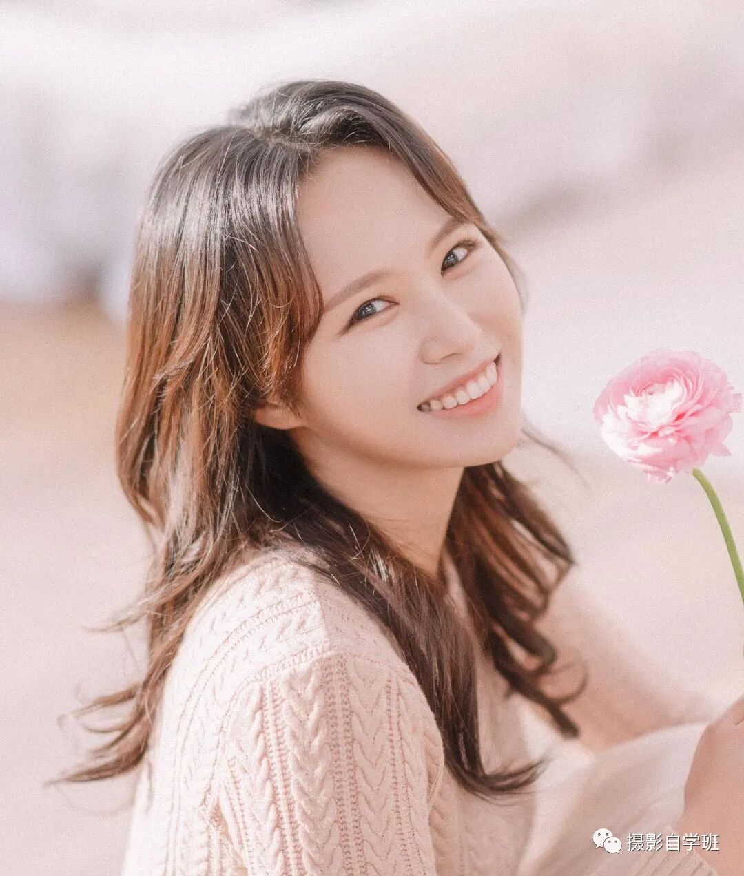 最简单的方法,就是准备一些道具,比如像上图和下图这样,让人在手中拿一朵花,配合着花,就可以摆出各种姿势了。还有另外一个重点。