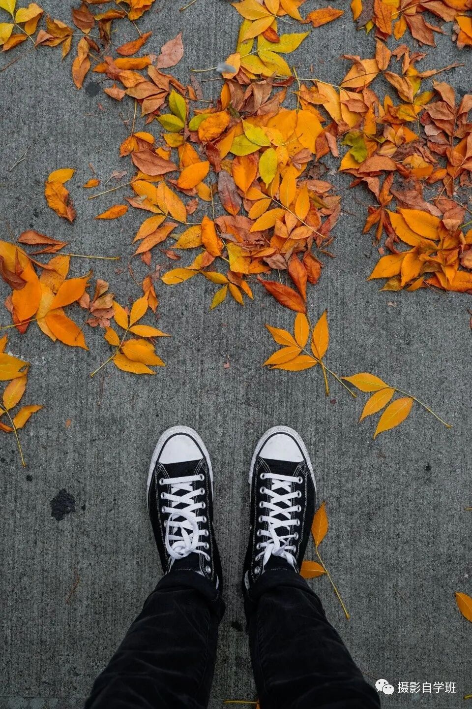 人像局部照片会更显得文艺,完全可以利用秋天的落叶,人站在落叶前,只拍摄脚和地面的落叶,照片会显得很简洁。