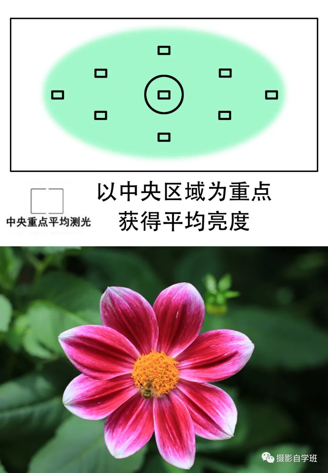 它也是对全局进行测光,但是它的测光权重,是在中心更重一些。以中央区域为重点,获得平均的亮度。所以在拍摄的时候,拍摄对象更适合在中间位置。