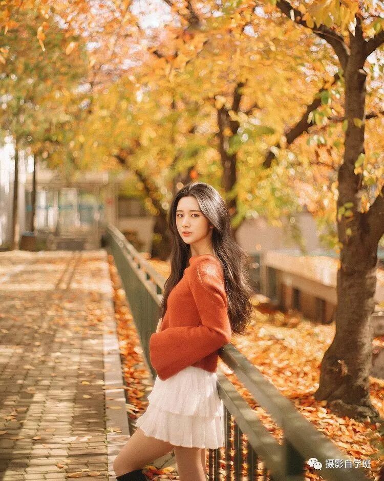 在小区或者公园里,经常能够看到上图这样的围栏,想摆出自然的姿势,让被拍摄的人,靠着围栏,把手抬到围栏上,回眸看镜头,就可以很自然,另外还可以向下走,这样让她不看镜头,看向远方,离镜头远的那只手,抬起来抚摸一下头发,姿势不做作。