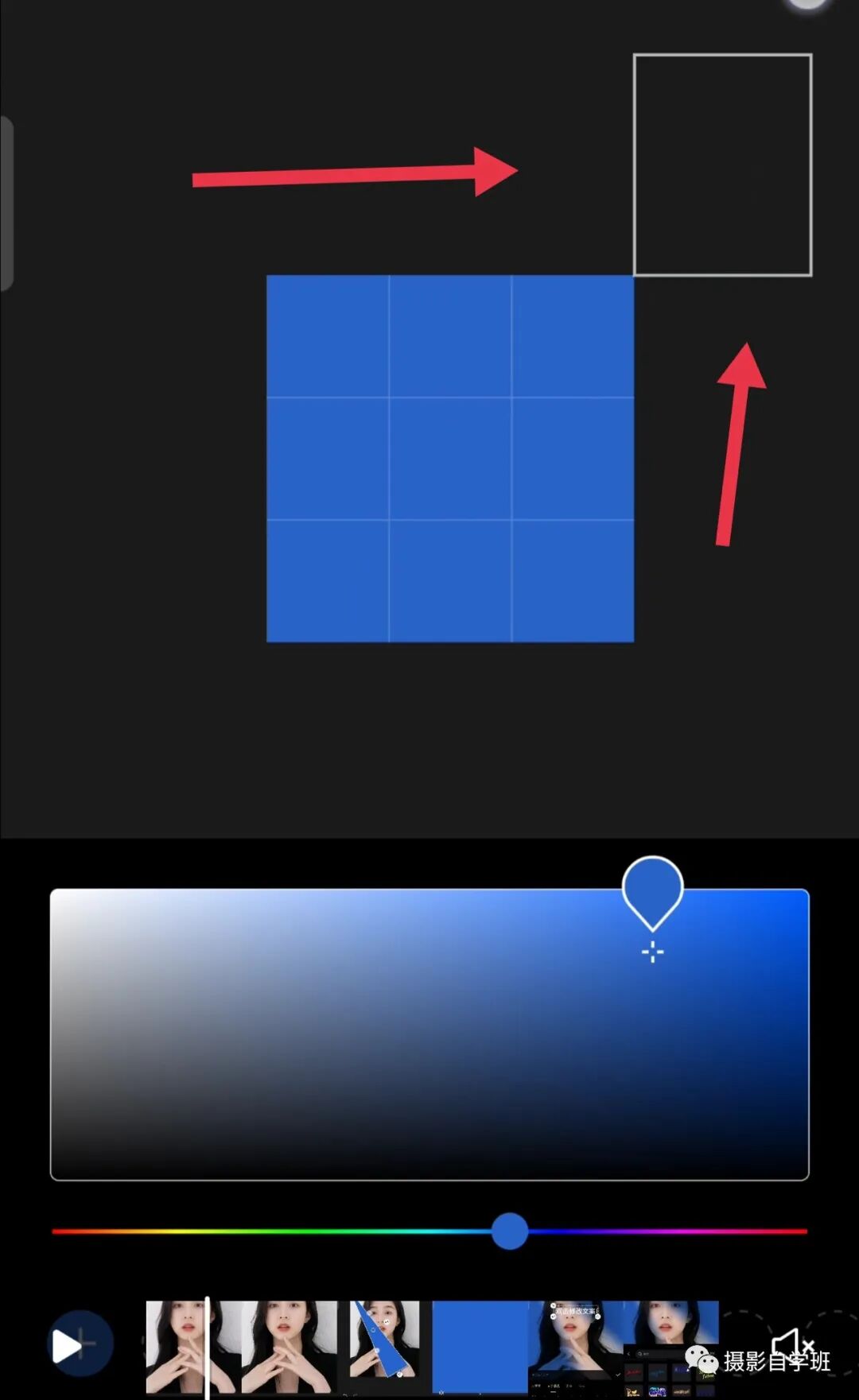 在颜色当中,可以随便选择你喜欢的颜色,我这里选择的是蓝色。选择蓝色之后。把原图缩小再缩小,拽到蓝色背景以外,保存蓝色背景,这样一张纯色背景的图片,就做好了。