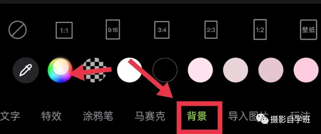 用软件打开图片,点击页面下方的背景,再点击左侧的颜色。
