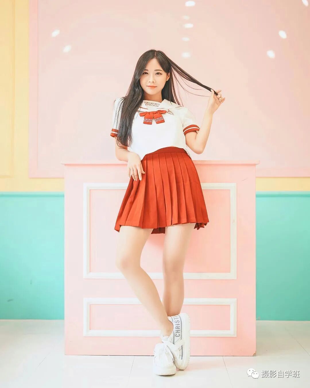 除了摆姿以外,还要注意画面颜色搭配,如果想让照片,看起来显得更干净,在背景当中尽量把颜色,控制在小于等于三个,并且背景的颜色,和人物衣服的颜色,有所呼应,会更美观。