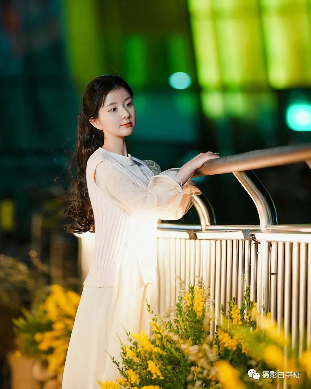 手中拿着一束花,可以与花互动,但是站在路中间,拿着一束花,眼神还是出神的状态,这样的摆拍,就很明显。而这种出神的眼神、状态,可以像下图,这样靠在路边的围栏上,两个手,自然地搭到围栏上,轻轻坐在围栏上,这样的动作,和眼神,都有呼应,这样的动作,在这个环境,即使是摆拍出来,看起来也更加自然一些。所以,在摆拍的时候不要犯,眼神、道具、姿势与环境不匹配的错误。