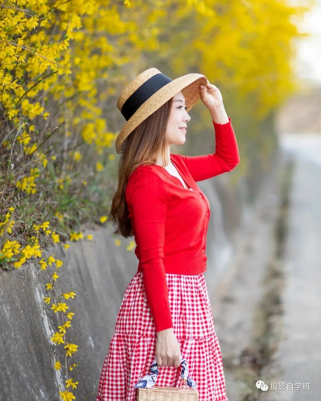 低身向前可以闻花,但低身向前还看着镜头,这样动作和眼神有所相悖,没有利用好路边的花朵,还让姿势显得比较刻意。而我们在摆姿势的时候,可以像下图这样,眼神与姿势,都是同一整体,互相有所呼应,照片看起来,才不会尴尬。这个错误很不经意就会犯,看似小,对照片的影响却很大,要参照方法改正。