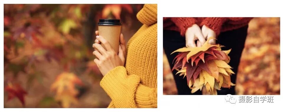 手握饮品,或者拾起一把树叶,这些都是丰富我们拍摄过程的元素,而且也有手部的展示。我们是拍摄风景照,怎么高兴怎么来,不同于肖像照,需要正襟危坐。所以拍摄一些小细节部分,温暖画面。