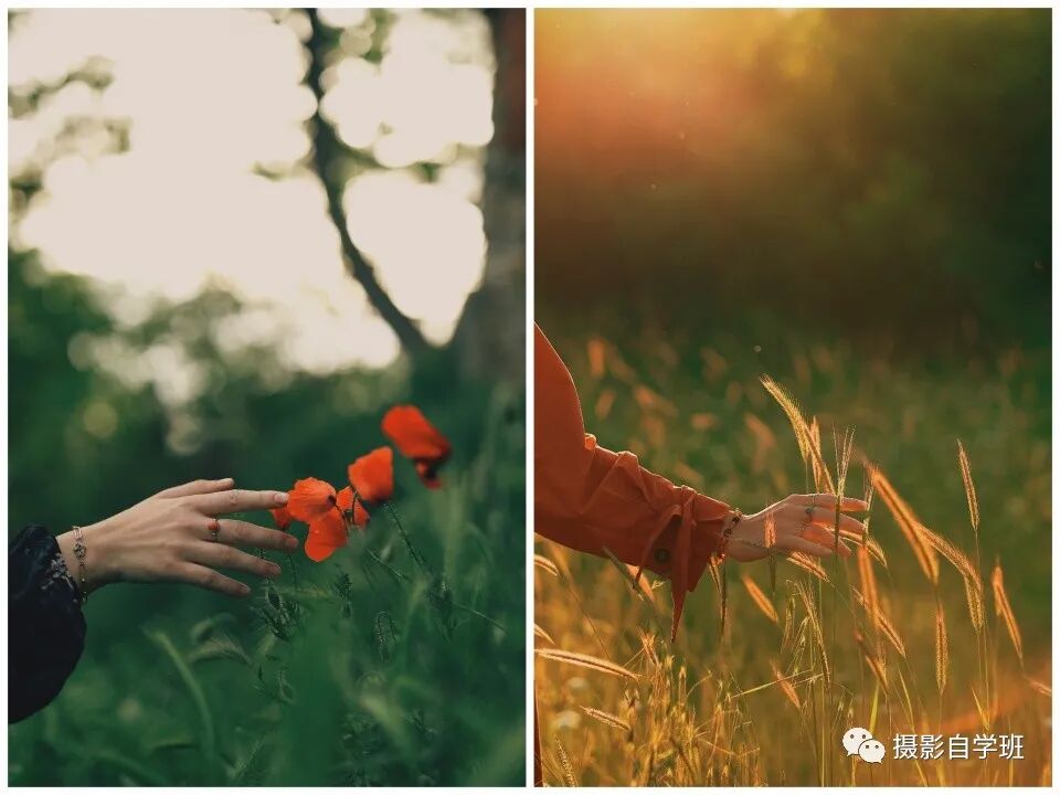 人像摄影师,最让人头疼的就是尴尬,不好意思面对镜头,那拍摄的时候,就可以像上图这样,摄影师让人撩头发,然后再抓拍,或者摄影师引导花丛中的人,拿一朵小花,看小花不看镜头,这两种方法都可以避免尴尬。