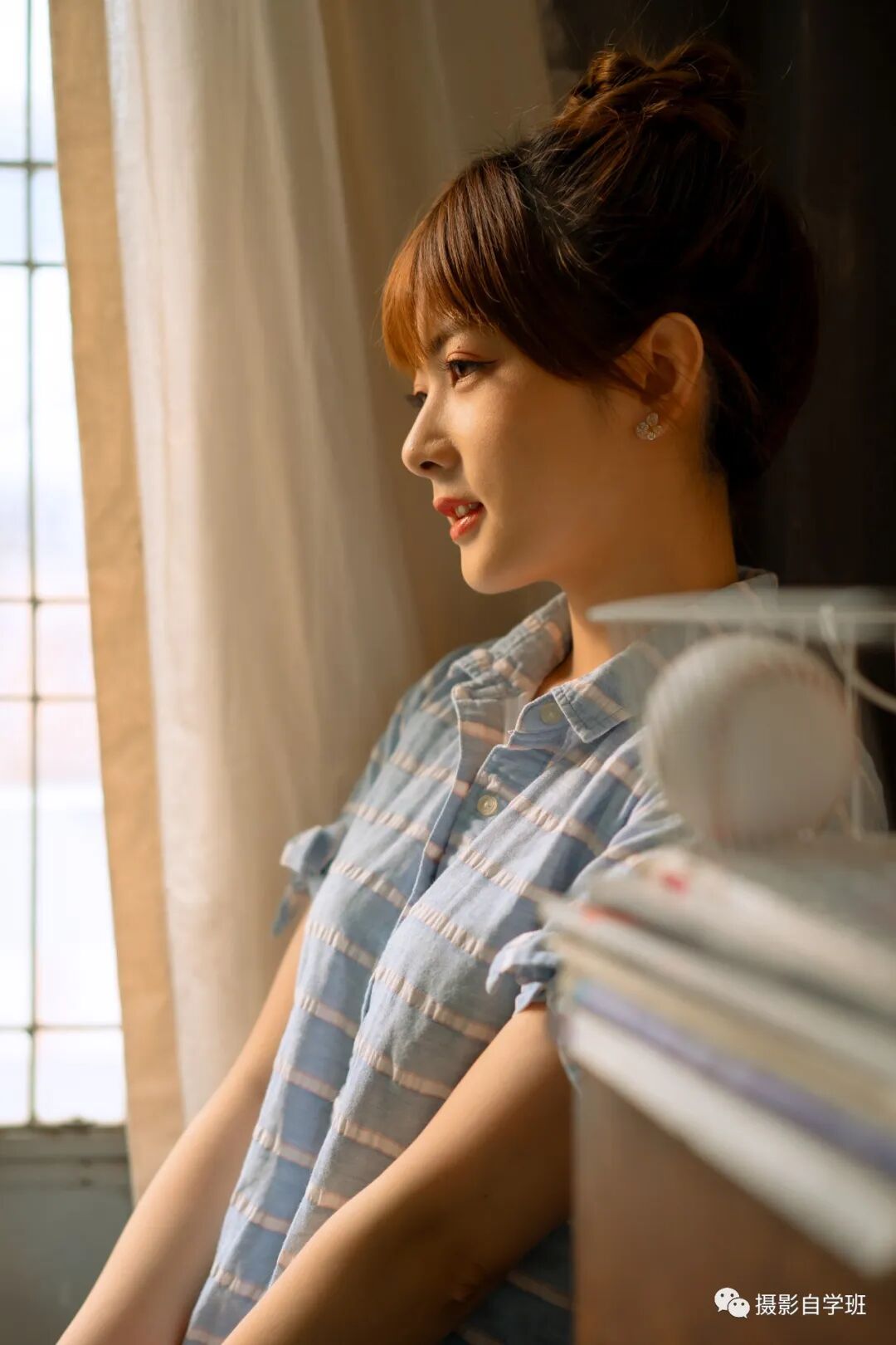 如果没有反光板,可以让人,坐在靠近窗户的地方,这样窗口的光,就可以给人的面部补光了。不要让人背对着窗口,而应该像上图与下图这样,坐在窗户附近,摄影师也不要离窗口太远,尽量贴着窗户墙站,这样拍摄之后,即使没有反光板,人的脸上也不暗了。