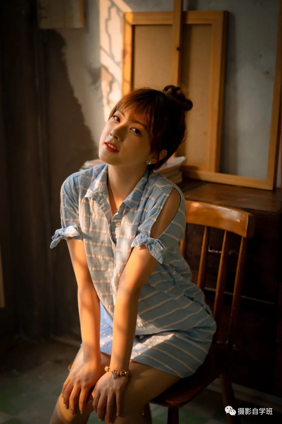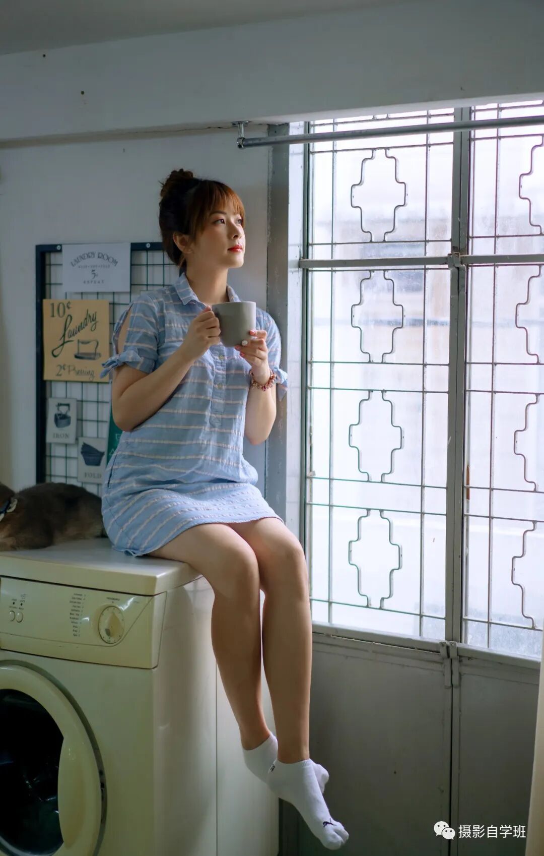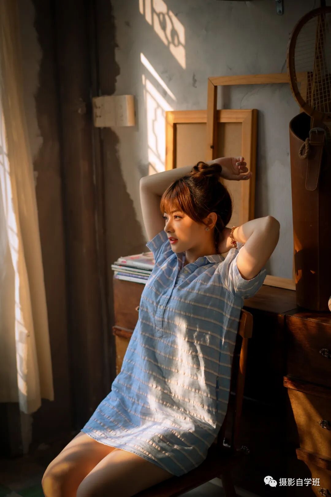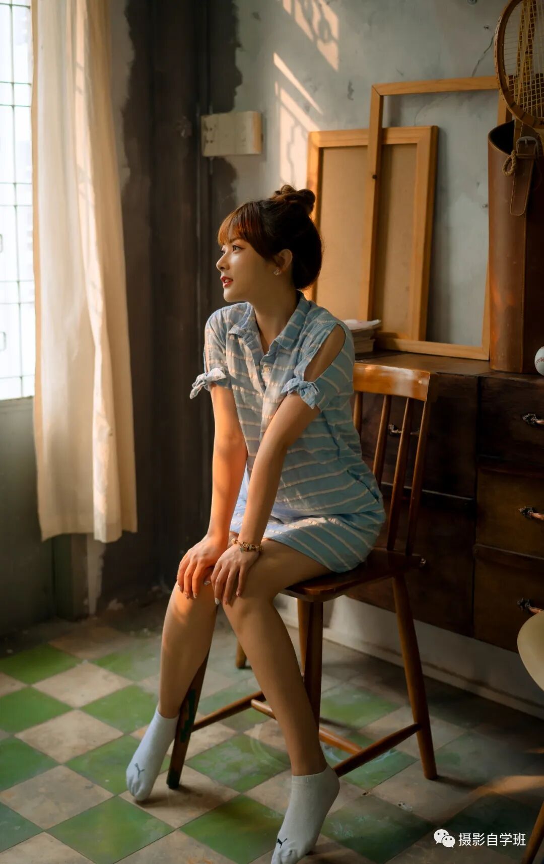 如果家中有暖色透明的窗帘,就更好了,拍摄的时候,让人坐在有光影的地方,把家中的暖色窗帘拉上。如果没有暖色窗帘怎么办?