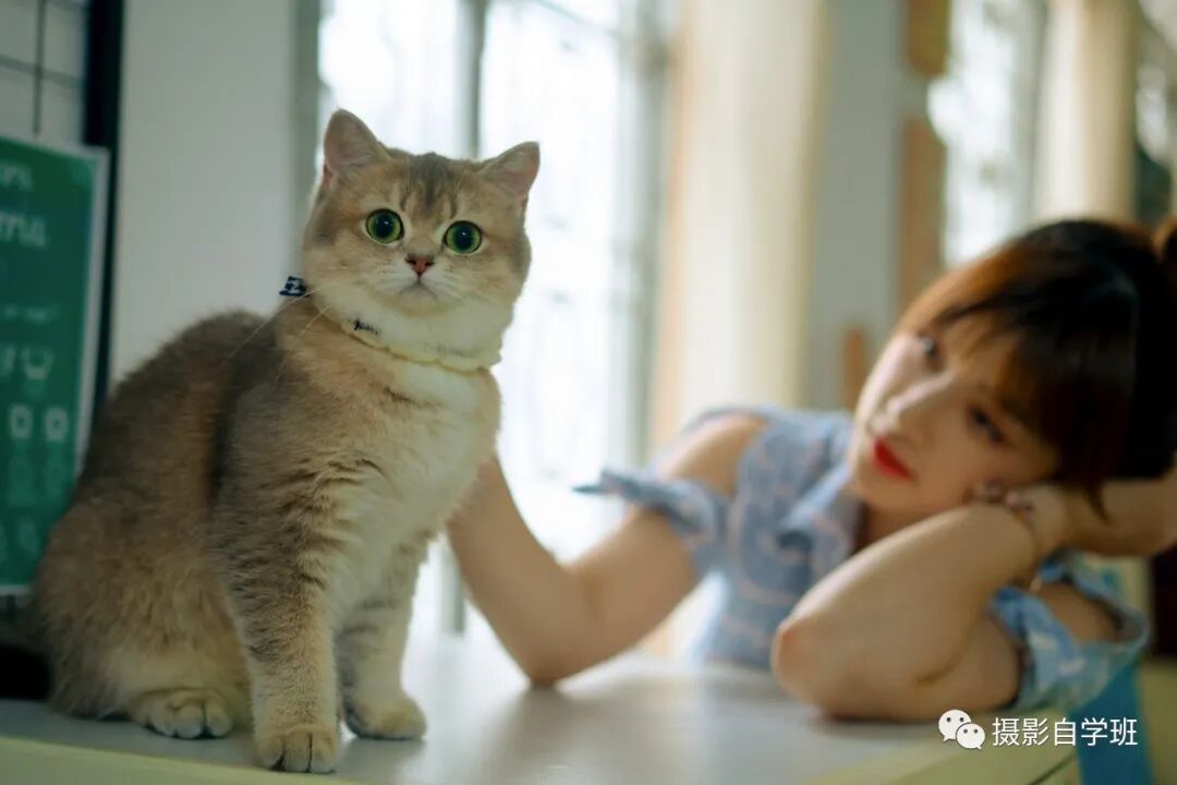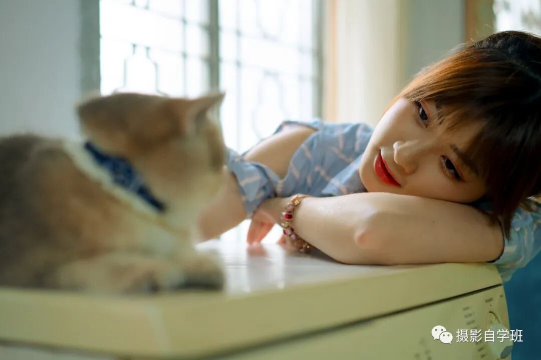 被拍摄的人,眼睛向上挑,露出的眼白就会太多,长出来就不好看了。摄影师一定要学会恰当引导,并且不要从上向下俯拍时,让被拍摄者看着镜头。引导她和猫互动一下,被拍摄的人,眼神是平视的,看起来会更好看。