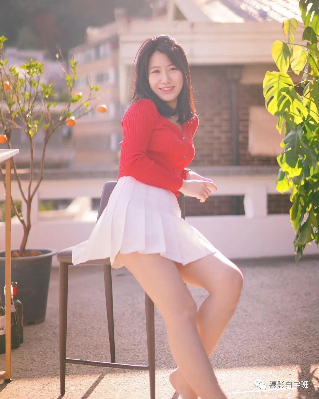 下面这张照片, 本可以拍摄把腿显得更长,但是此时出现了一些错误,没有体现出大长腿,你知道怎么改正吗?