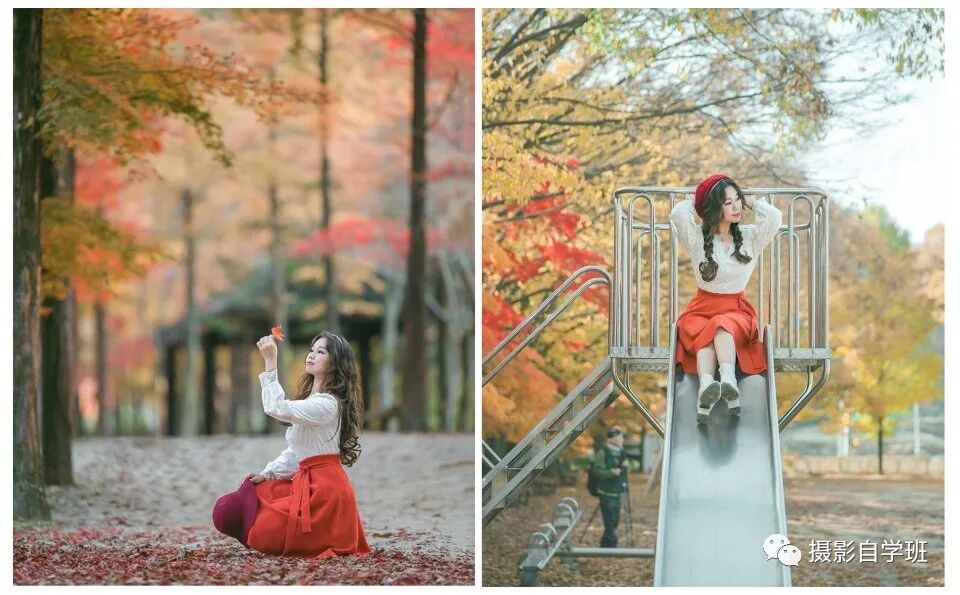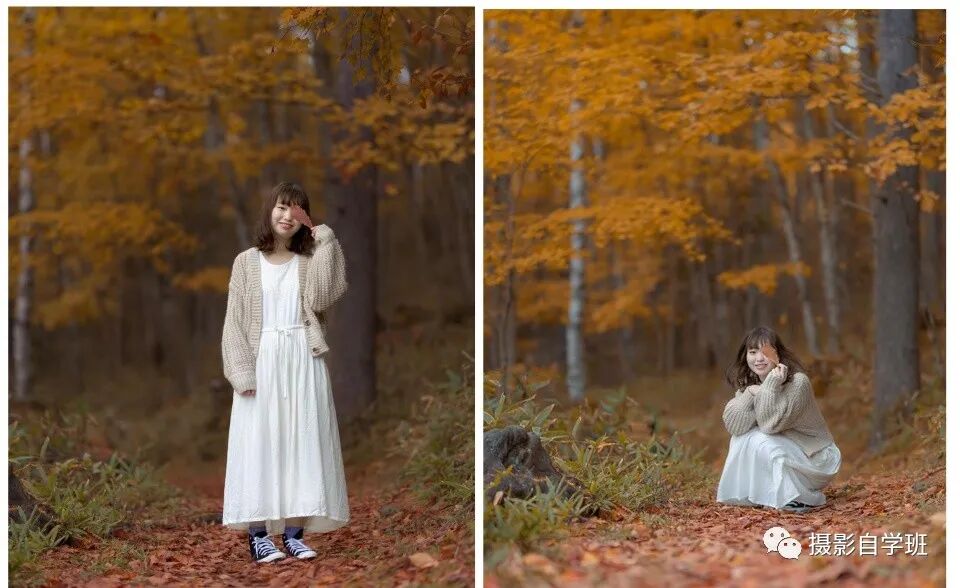 找个可以互动的道具,落叶、或者看似漫不经心地观望,这些都是自然动作的流露,而且也可以缓解我们拍摄带来的紧张感。