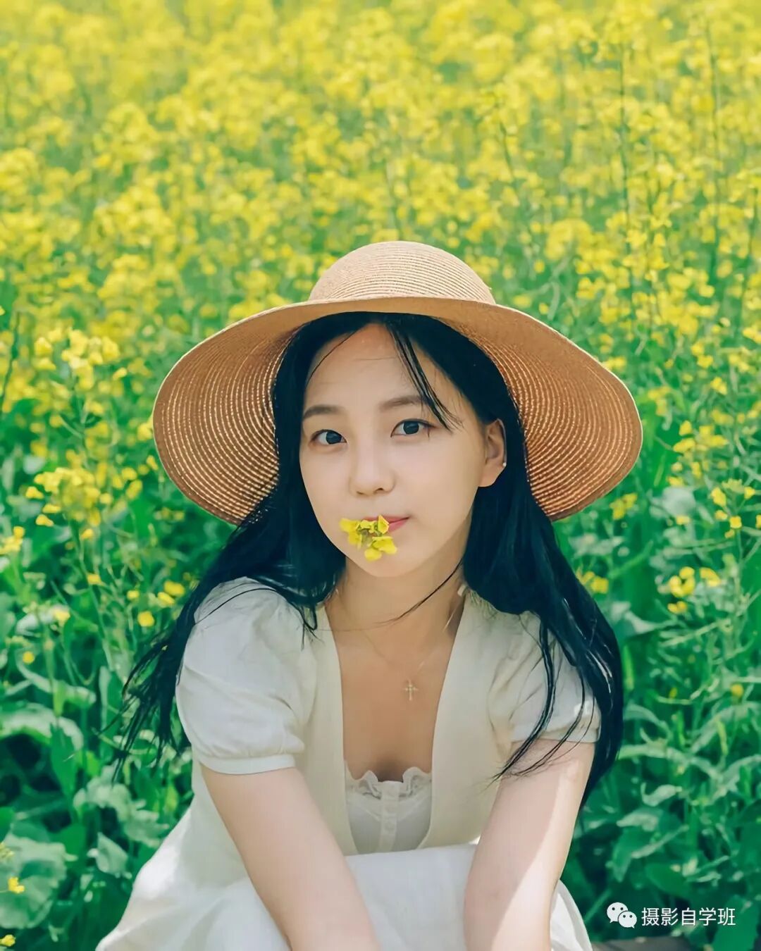 拍人像照片,想要有趣,想要美。那被拍摄的人就要有趣,可以引导她嘴上叼着一枝花,面对镜头来一张。或者让她闻闻身边的花,侧脸拍一张。这样与身边的景物互动,画面就不会呆板。