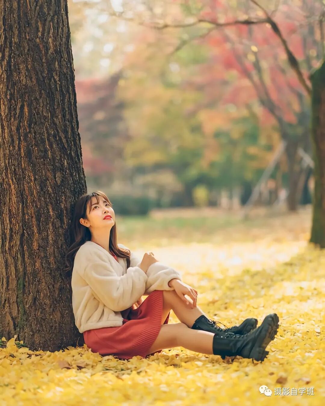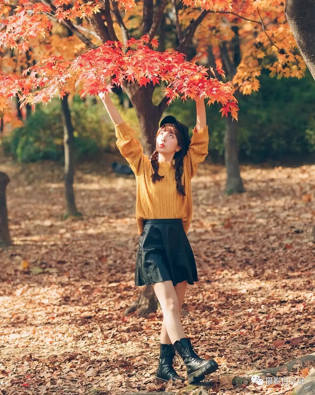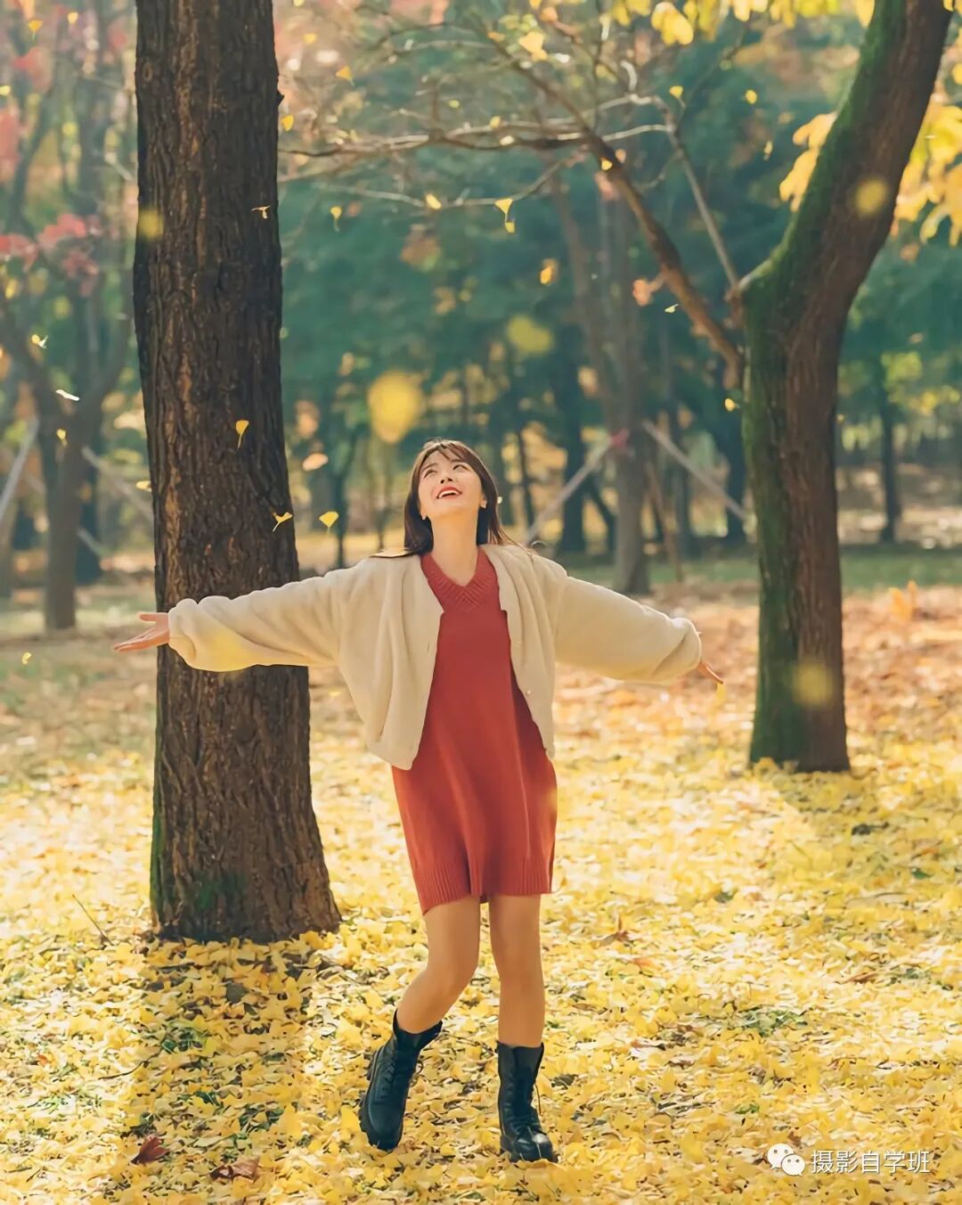 三、秋天时,在树下拍照,还有哪些姿势可以摆呢?