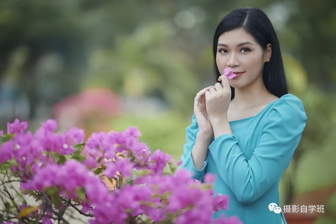 闻花香一直都是一个经久不衰的拍摄姿势,像上图一样,还可以用花来做前景,丰富画面的层次,人物看向镜头,满满的故事感。