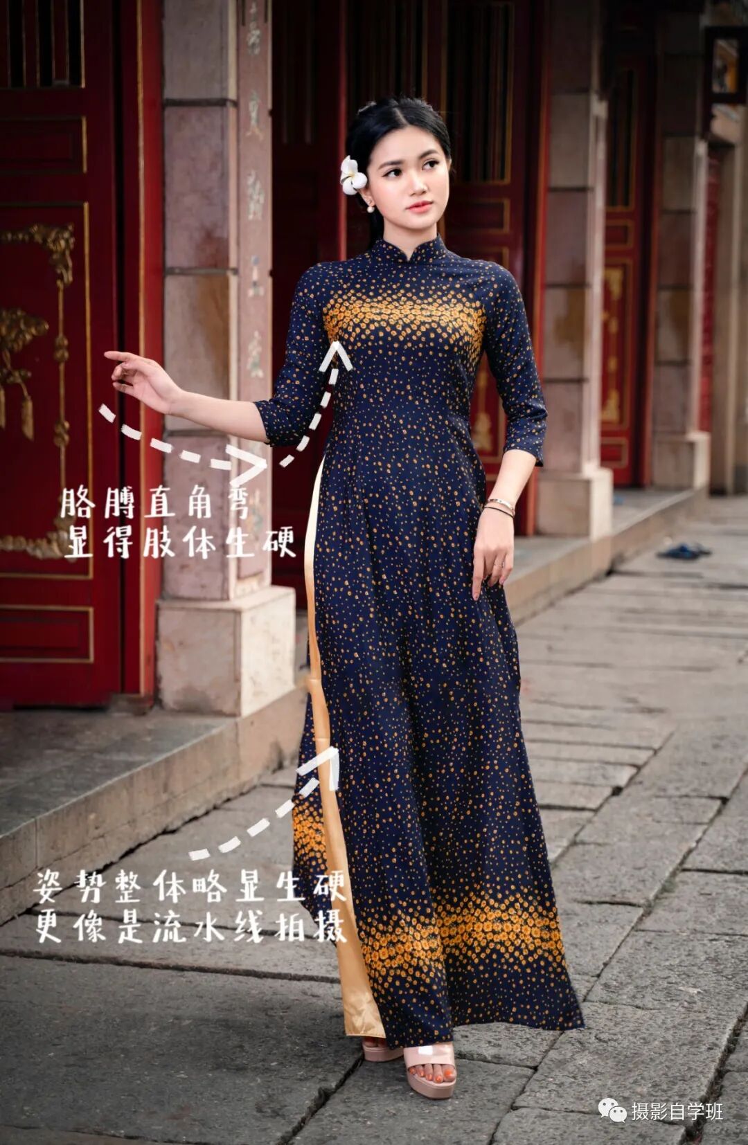 上图摆拍痕迹就很明显,而且胳膊展示也很刻意,僵硬的大直角胳膊,没有了柔美感,更像是流水线拍摄。