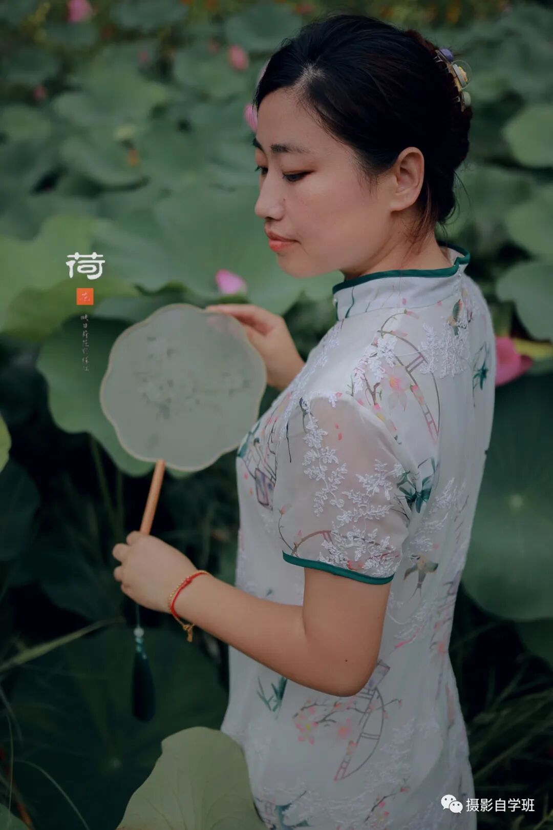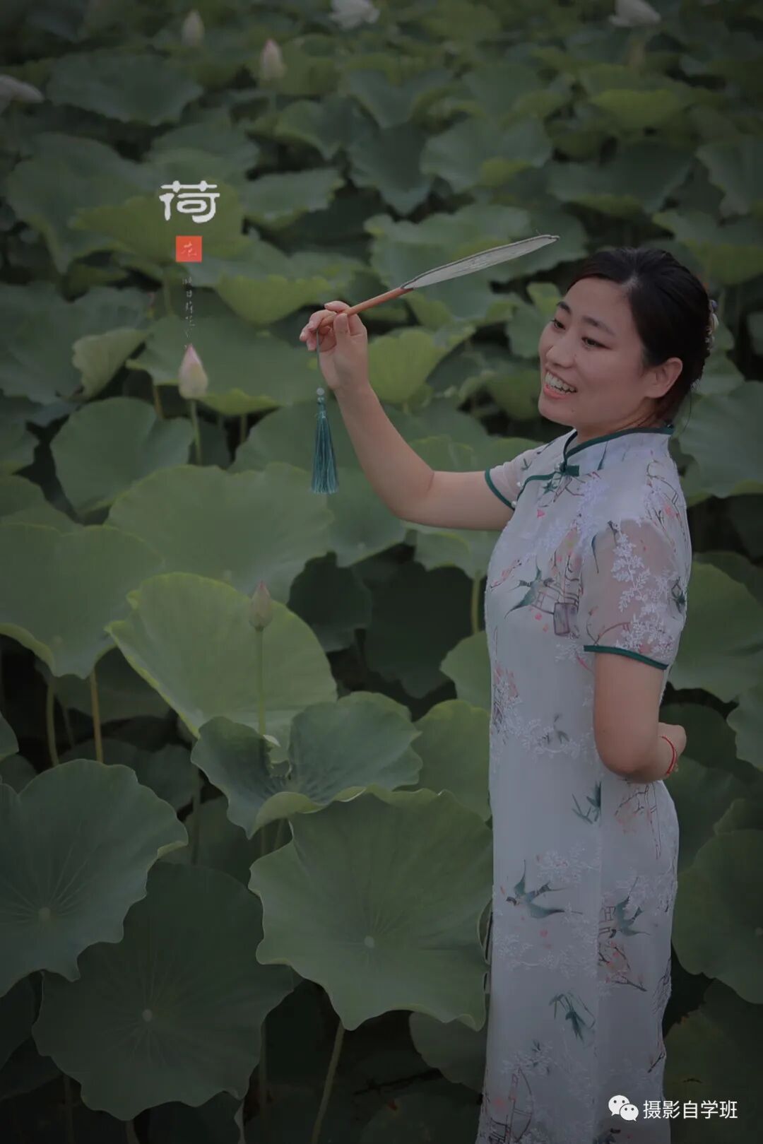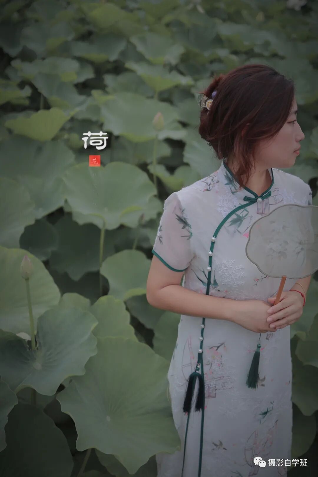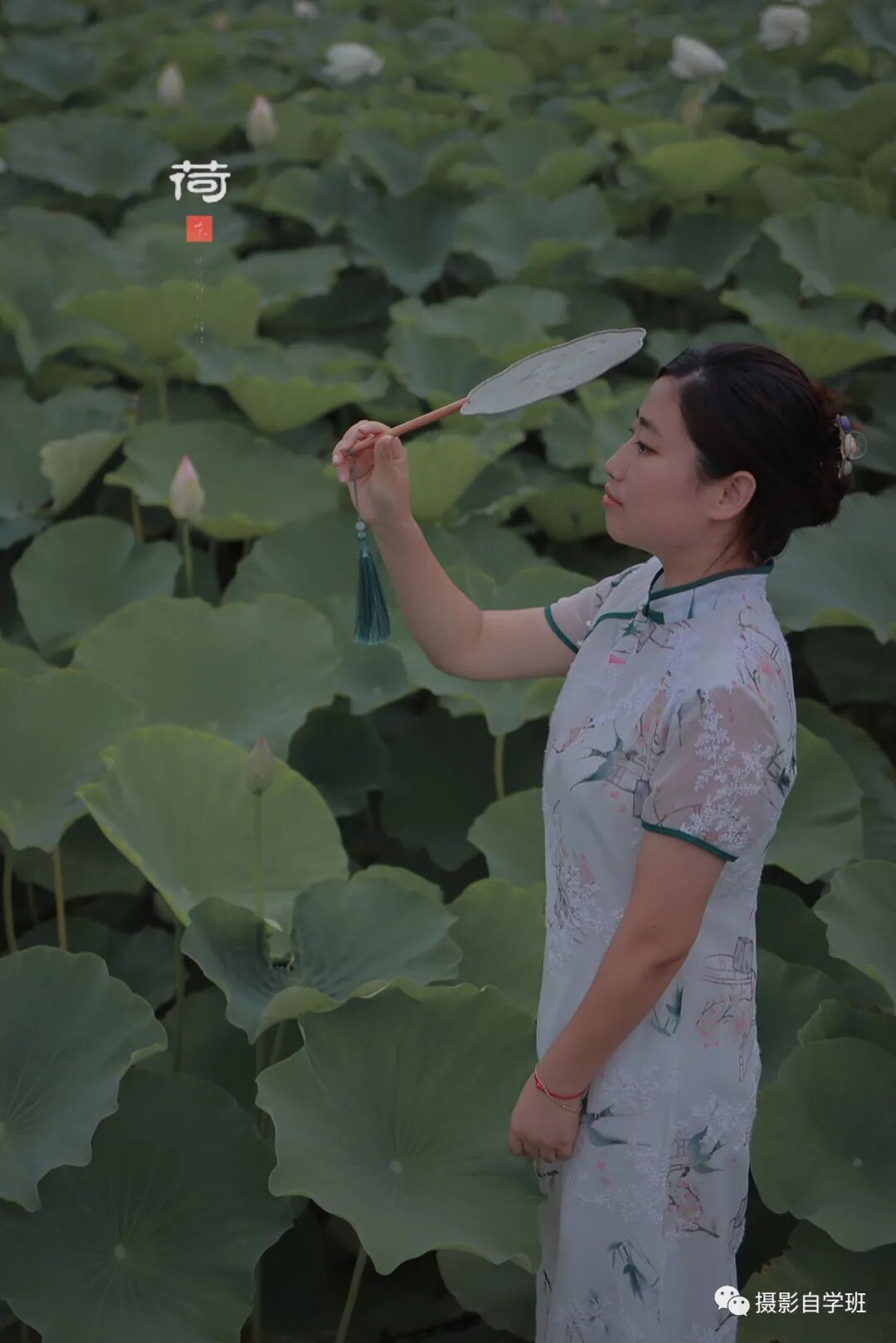 增加画面的故事性,拍摄一些画面的细节也无妨,不在乎肢体语言,不在乎面部表情,用身体的一部分做背景,拍摄一些荷花的细节,让画面有一定的故事情节也是好的。