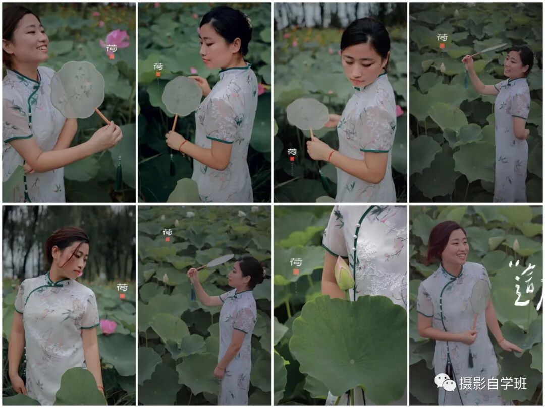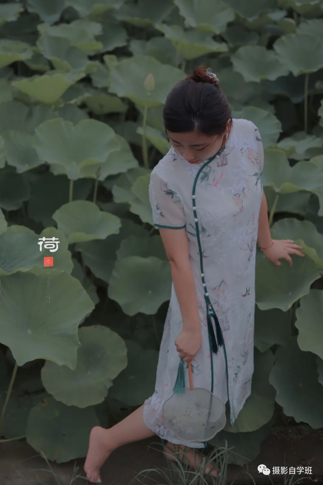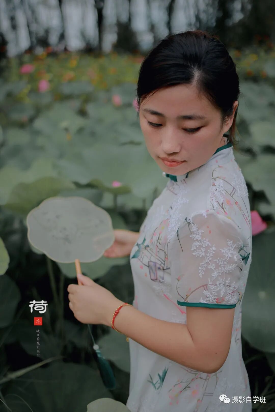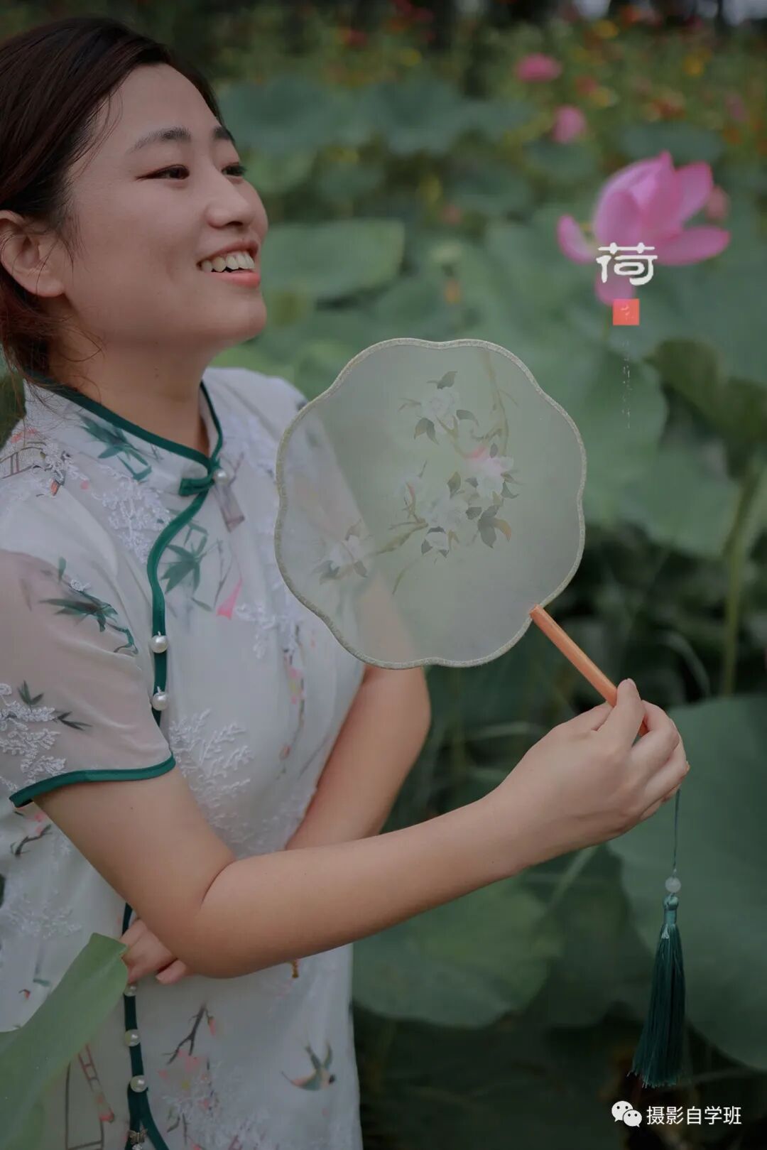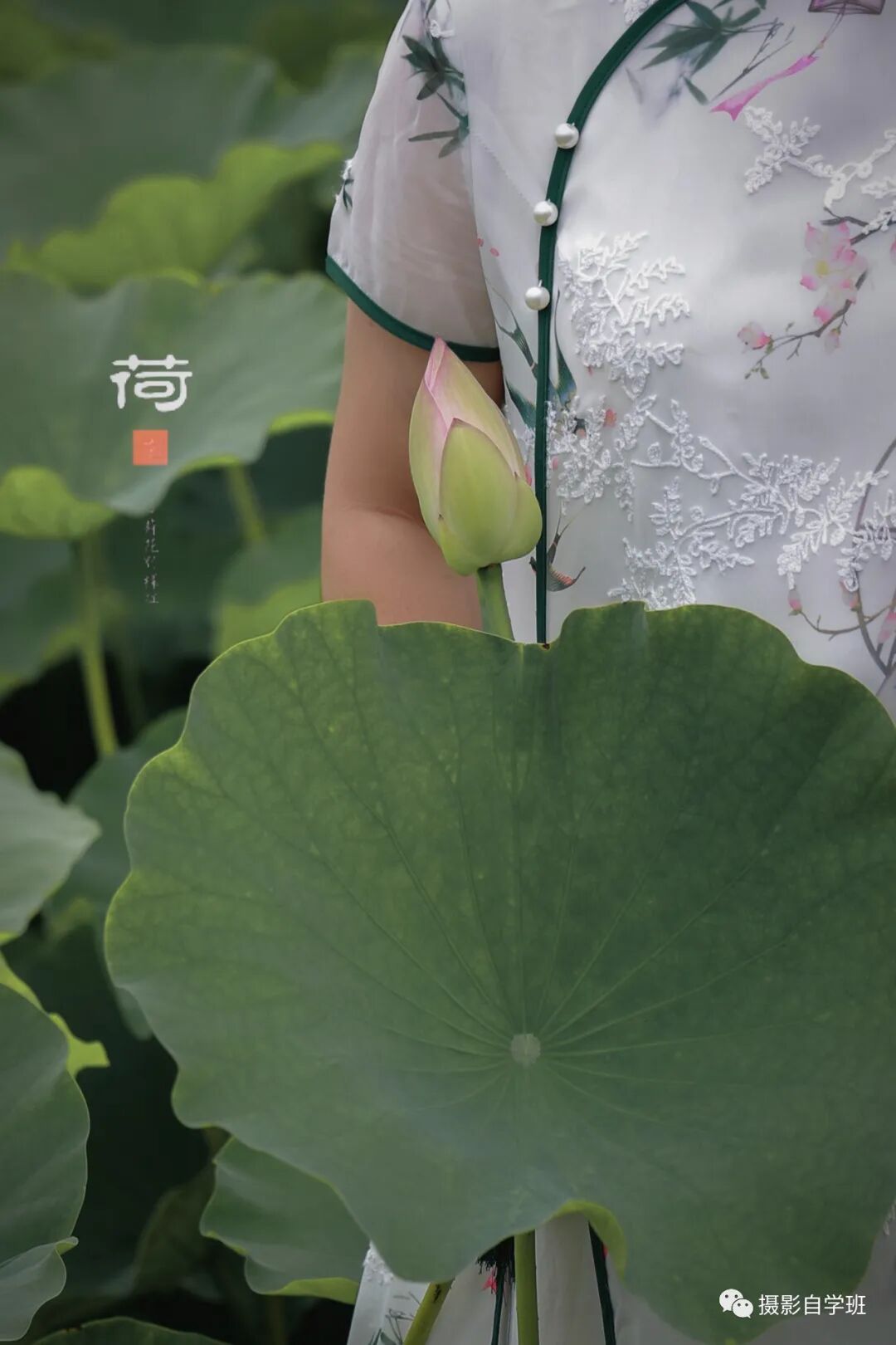 增加画面的故事性,拍摄一些画面的细节也无妨,不在乎肢体语言,不在乎面部表情,用身体的一部分做背景,拍摄一些荷花的细节,让画面有一定的故事情节也是好的。