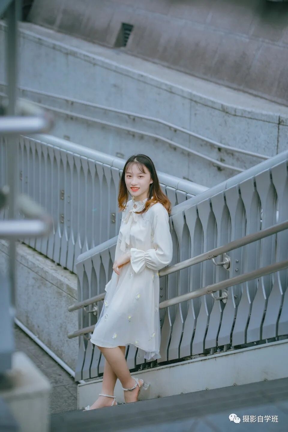 俯视角的拍摄角度是指,镜头高度高于人物,高角度俯拍。这种拍摄手法可以把人拍摄的娇小可爱,但是这个拍摄角度比较挑场地。像上图这样的在楼梯角度,一看就不适用俯拍。因为楼梯不是处于一种水平面,本身就有一种近大远小透视关系,人物身处这样的环境中,由于透视关系的映射,把人物显的有些畸变的小,而不是娇小可人的小。