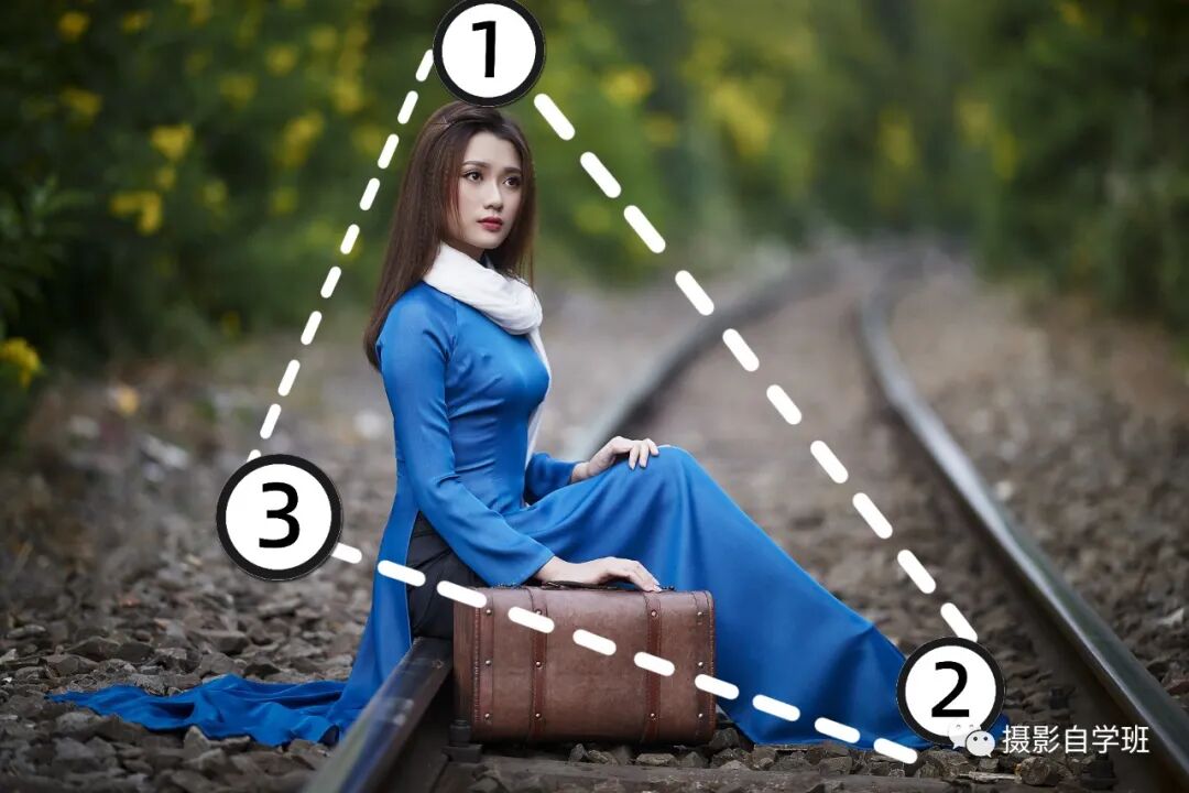 三角形构图,顾名思义就是画面中的人物,姿势可以构成三角形,这种拍摄构图具有一定的稳定性,给人一种视觉上的安稳感。