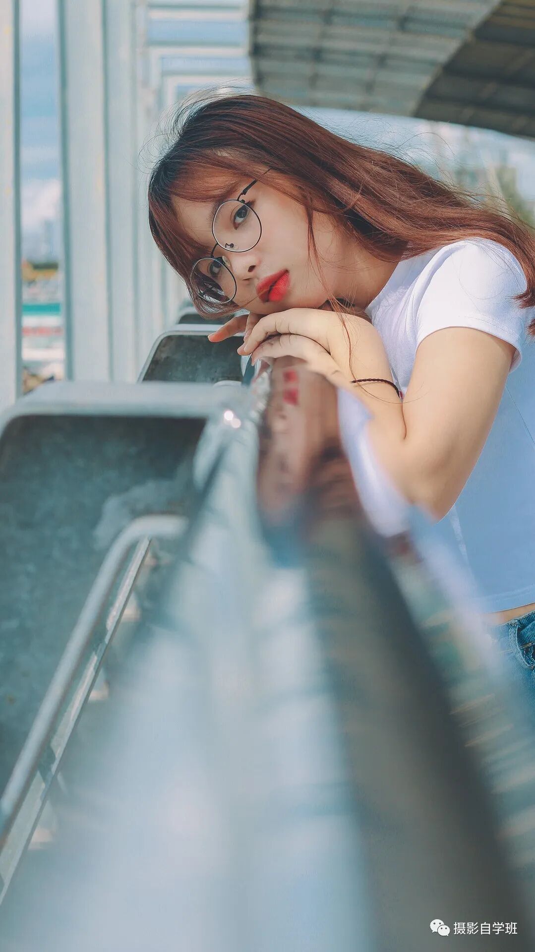 用线条引出画面主体人物,让画面更具有张力。非常适合在有栏杆或者墙面之类的地方拍摄,利用这些元素的线条感,拍摄出不一样的风格的照片。