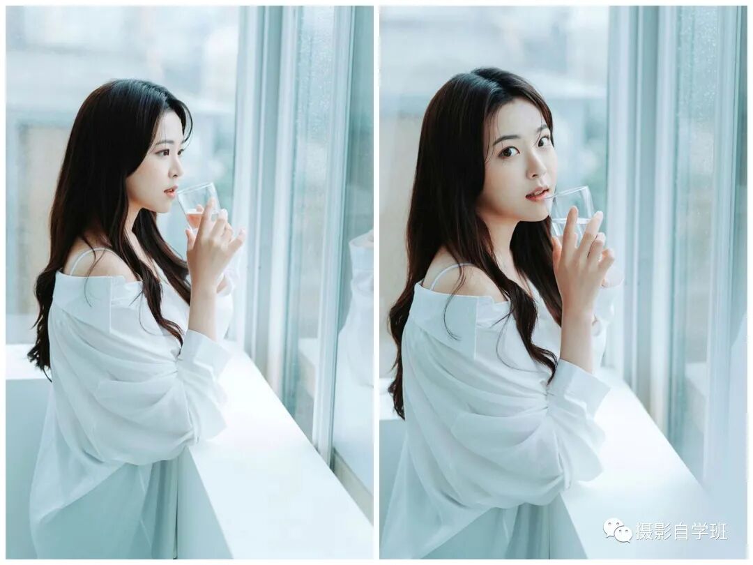 人像摄影当中,最主要的是人的面部要有光,如果在室内拍摄,一定要让人的面部像上图这样,面向窗户,窗口光可以让人的面部更亮!人像照片,人的脸一定不能暗,这是人像摄影的重点!手中拿个杯子,姿势就有了,在拍摄的时候我们一定要学会利用道具。