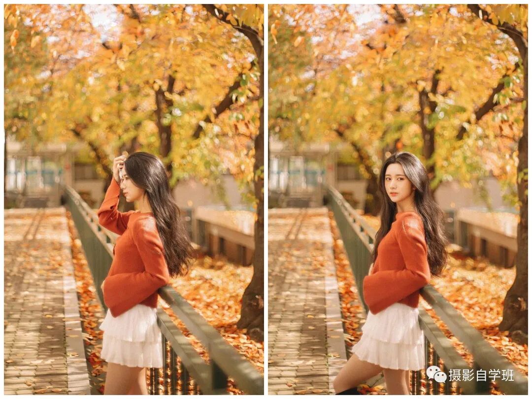 拍人像照片的时候,摆姿当中胳膊很重要,一定不要像上图左侧这样,没有什么依靠的时候,故意把胳膊抬起来,这种姿势看起来就太过僵硬,不自然了。如果像上图右侧这样,有一些栏杆,把手搭在栏杆上,胳膊有处安置,显得更自然。当你胳膊没处放的时候,记得找可以依靠的地方,可以搭胳膊的地方。