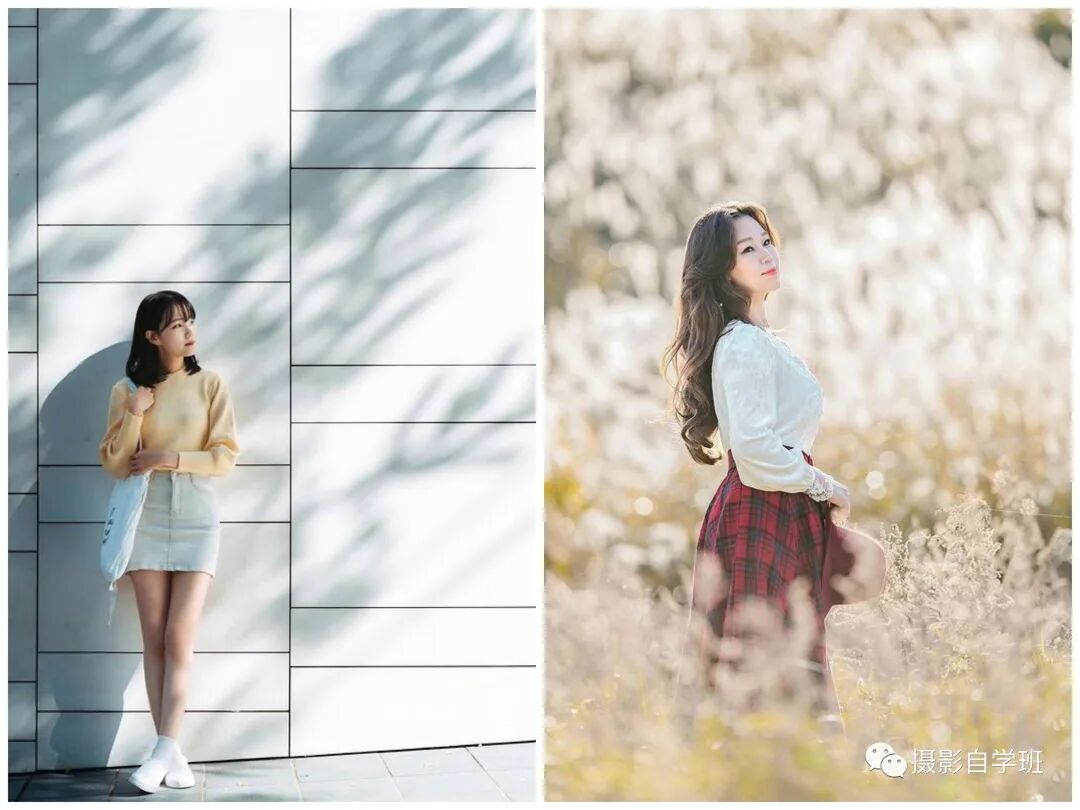拍摄人像,站着的时候比较多,所以站着的姿势就多介绍一点,我们还可以找有光影的墙,让被拍摄的人站在光影墙前,把着手中的包,两个脚交叉站立,看向远处姿势就可以了。没有墙,那可以在下午三点之后,光线柔和的时间,来到草丛中,侧光拍人像站着的姿势,不用太刻意,好的环境,人随便站在那里,就可以拍出好看的照片。以草丛为背景,草配阳光照得很漂亮,整张照片姿势和背景就都好了。