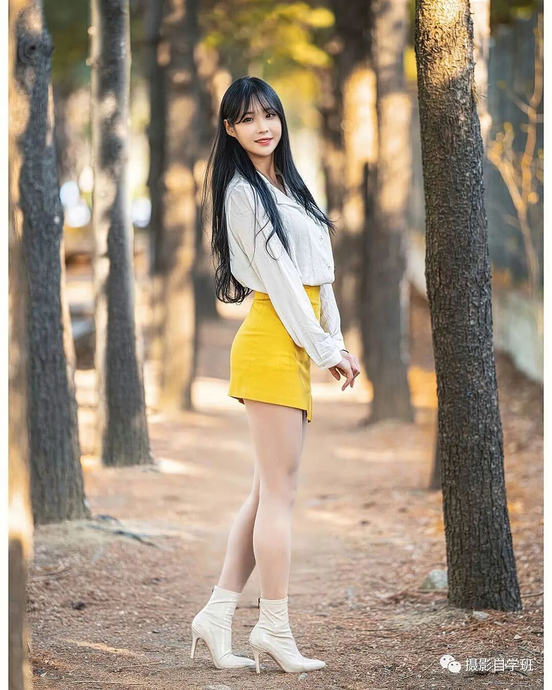 在你的拍摄环境当中,寻找一些可以用手扶着,用手靠着的地方,把手扶在上面,此时就会更加自然,不尴尬、不做作。那如果在室外拍照,有哪些万能的技巧呢?可以像下图这样,两个手自然下垂,但是记住重点,手指头要翘起来,两条腿要交叉站着,不要重叠站立。如果重叠,两条腿看成一条腿的话,照片看起来就不那么立体,也没有曲线,就会比较死板。两条腿自然下垂,不要垂在两个腿边,而是应该在小肚子之前,这样的姿势,可以更显娇羞,优美可爱。如果垂放在腿边,就会看起来比较僵硬、死板。