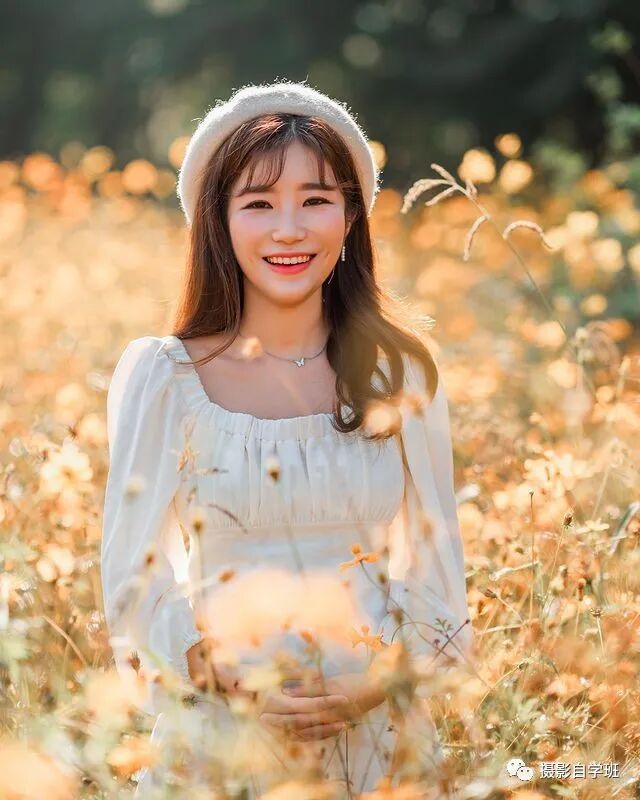 人如果站在花丛当中,因为花会形成遮挡,所以两个手,自然交叉,放在小肚子之前,就可以了。如果想让画面看起来,更加丰富,可以把手隐藏起来,嘴上叼着一朵花,像下面这张照片,看起来就更有趣味。这里除了注意,手部姿势以外,还有注意穿着。因为整个环境已经足够鲜艳,所以,人不适合穿,再过于鲜艳的衣服,像上图与下图,这样白一点,干净一点,淡雅一点的颜色,比较适合。合适的衣服,加上合适的姿势,可以给照片加分。