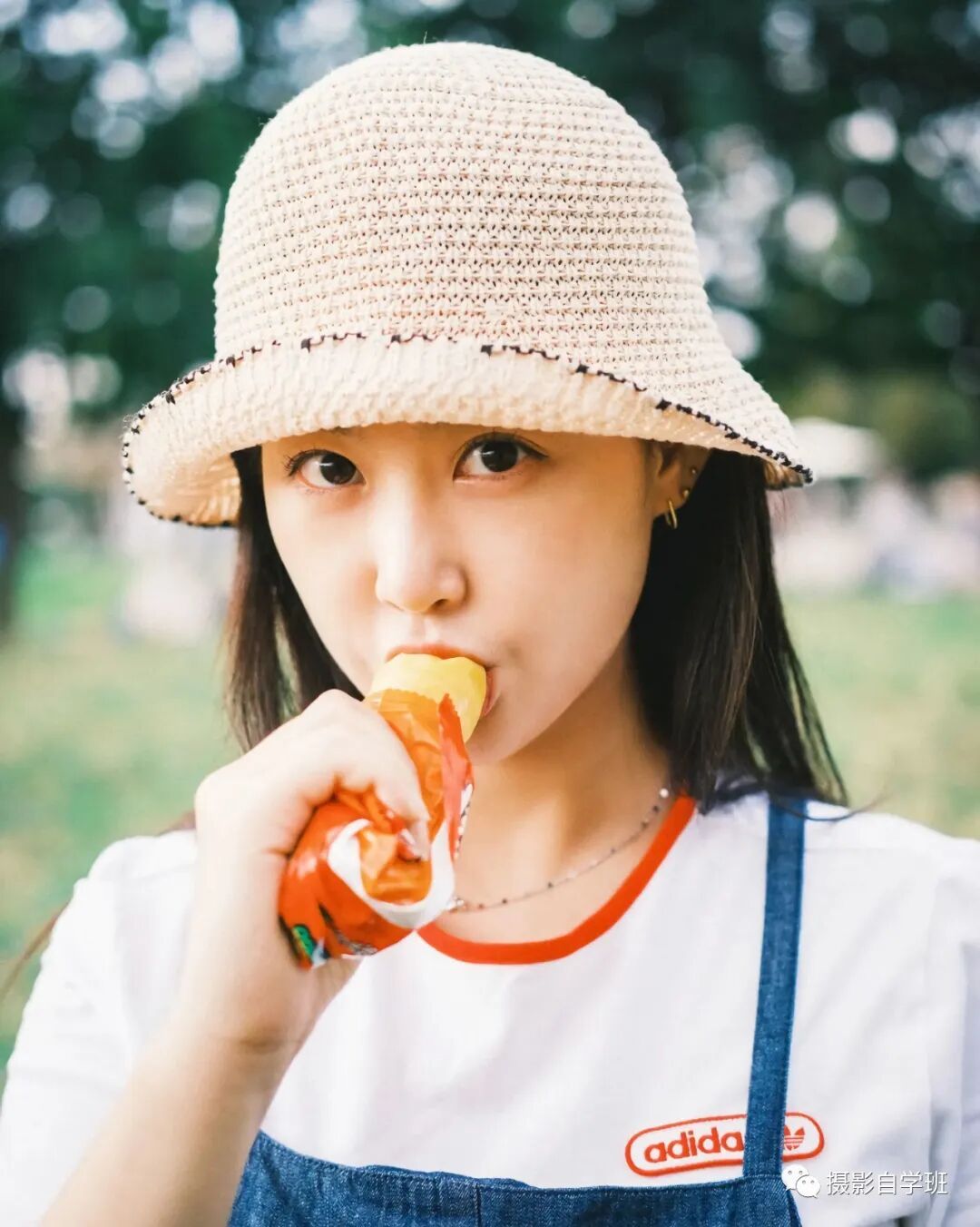 所以可以进一步缩减背景,像图6这样,拍这种大头贴的照片,此时需要使用大光圈,通过对焦在人,把人拍清晰,通过大光圈,来把背景虚化,因为背景本身占比就很小,虚化之后,就更看不清了,让并不优美的景物,在你的画面中看不太清晰,这是正确的思路。